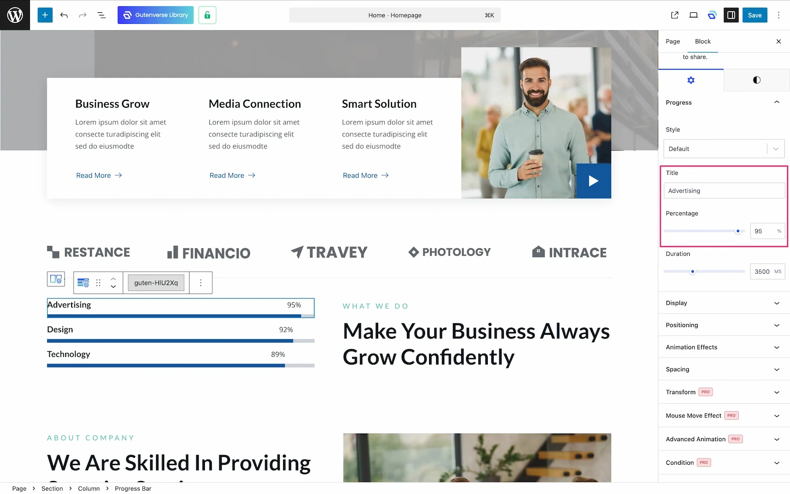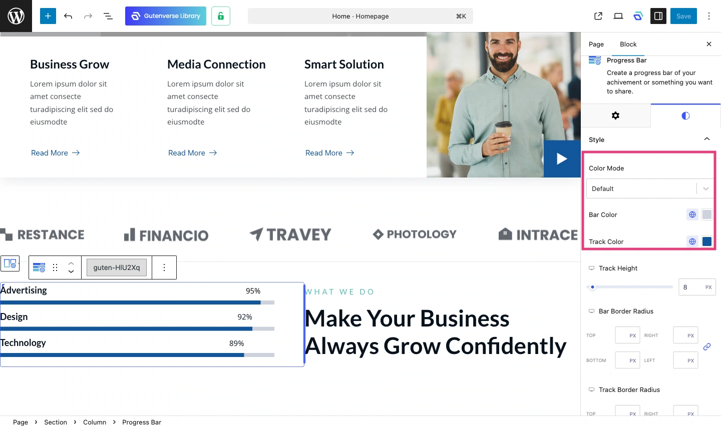 With Gutenverse, you will not be stuck with just one progress bar style. You can adjust the look, animation, layout, and responsiveness right inside the block editor without touching any code. That gives you more time to focus on what actually matters: building something that looks and feels great.