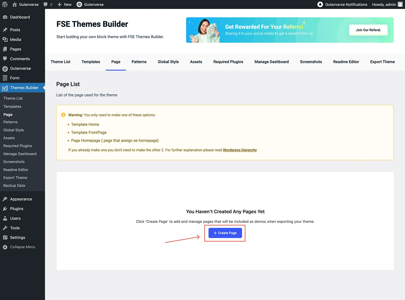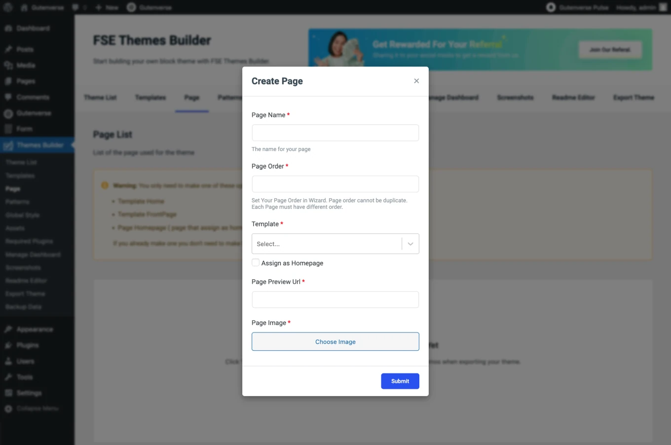 After clicking the Create Page button, a popup window will display, as shown in the image.