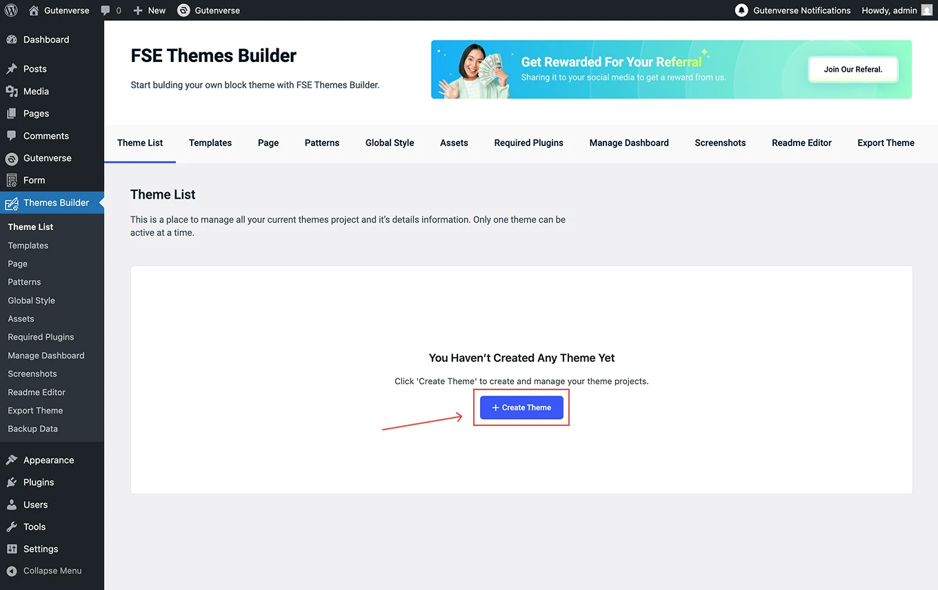Inside the menu Theme List, Click the Create Theme button to create a new theme.