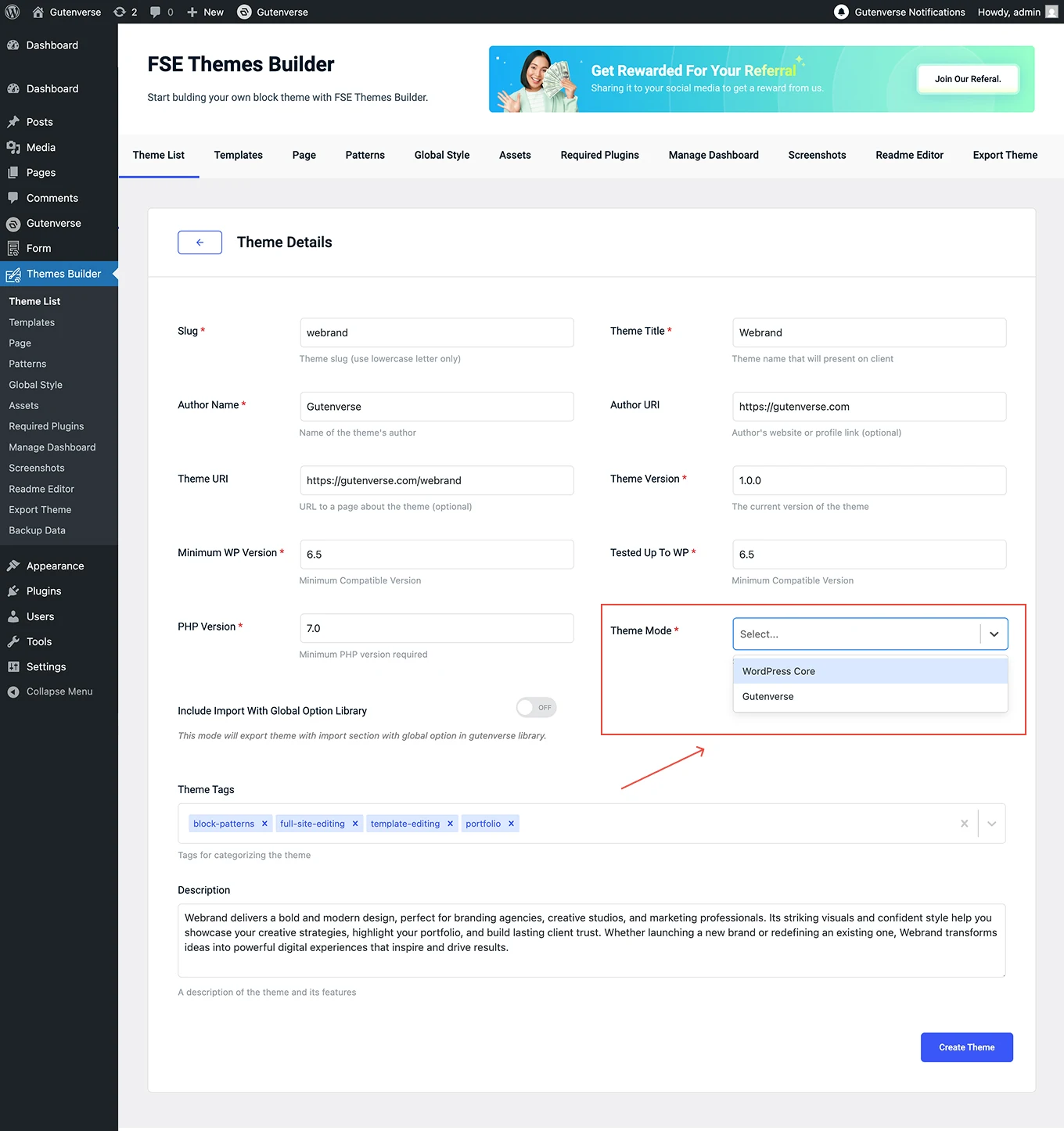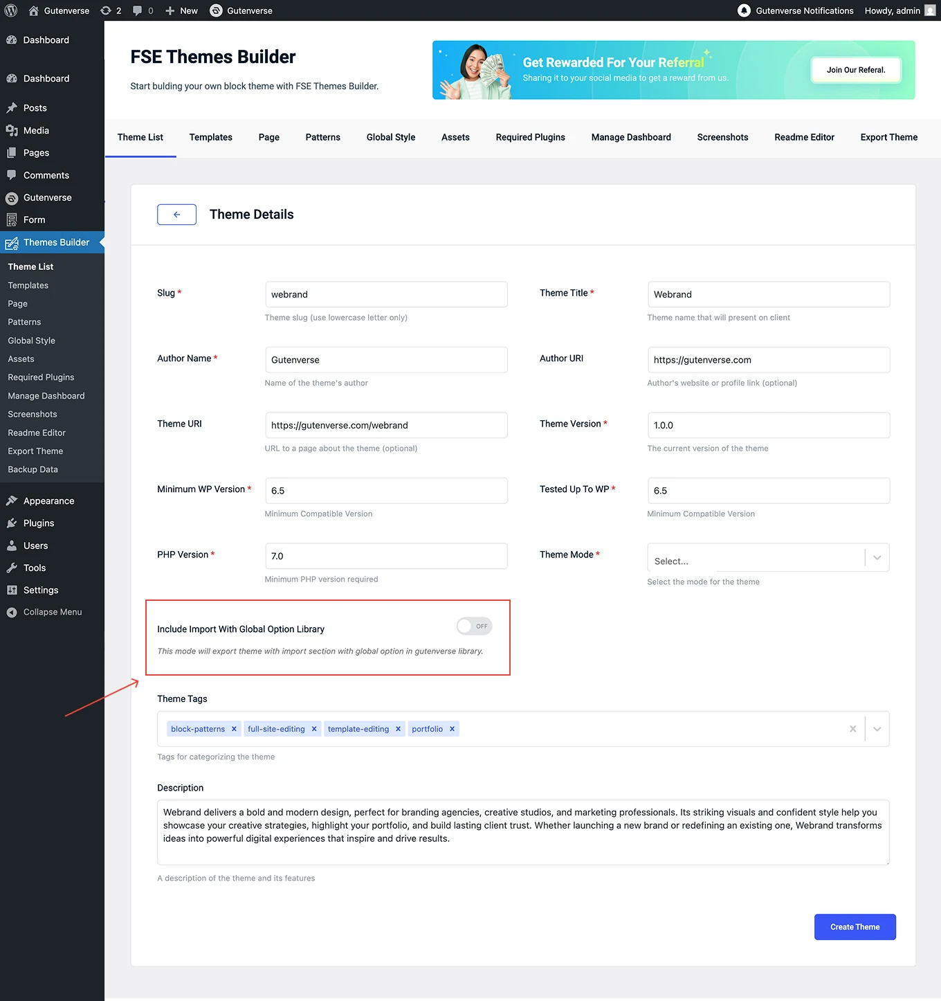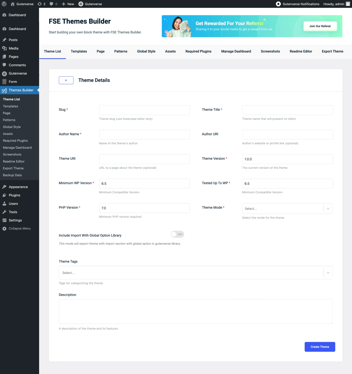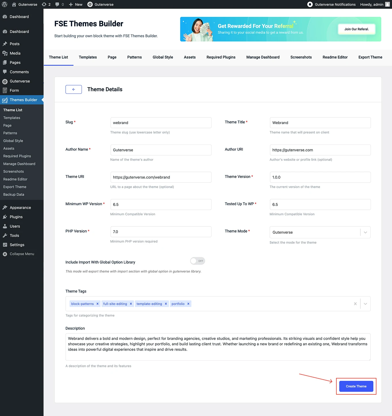 After you have completed all the fields, click the Create Theme button in the bottom right corner.