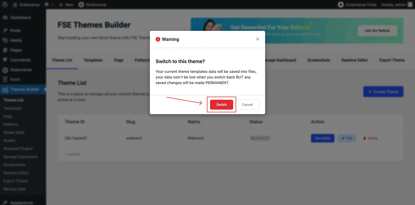 After you click Set Active, a popup will appear for confirmation — then click Switch.