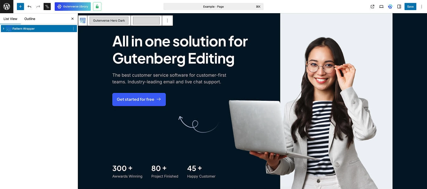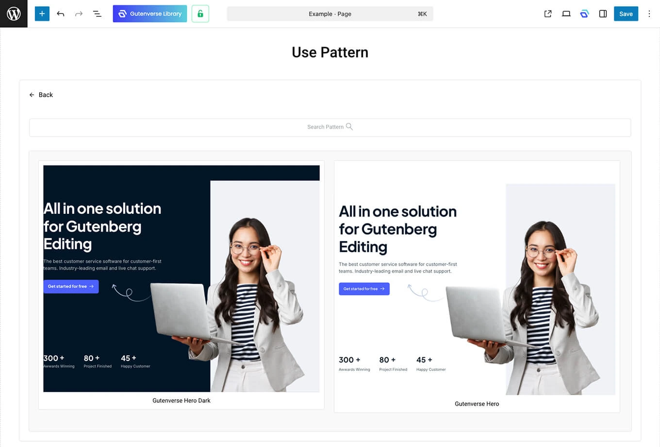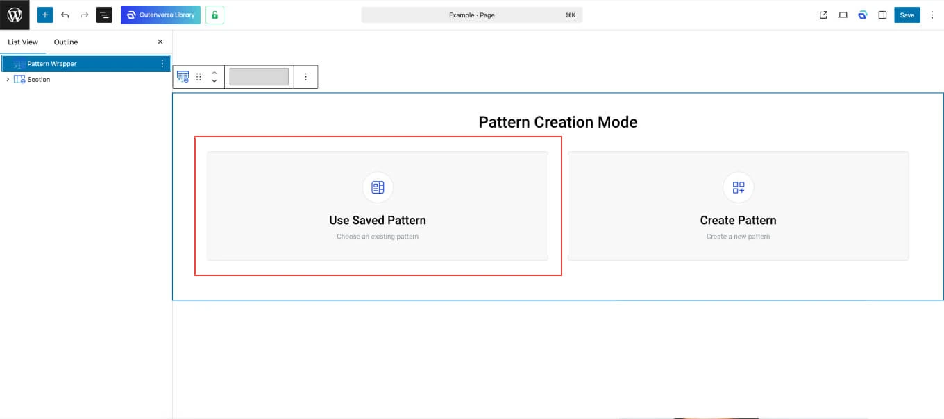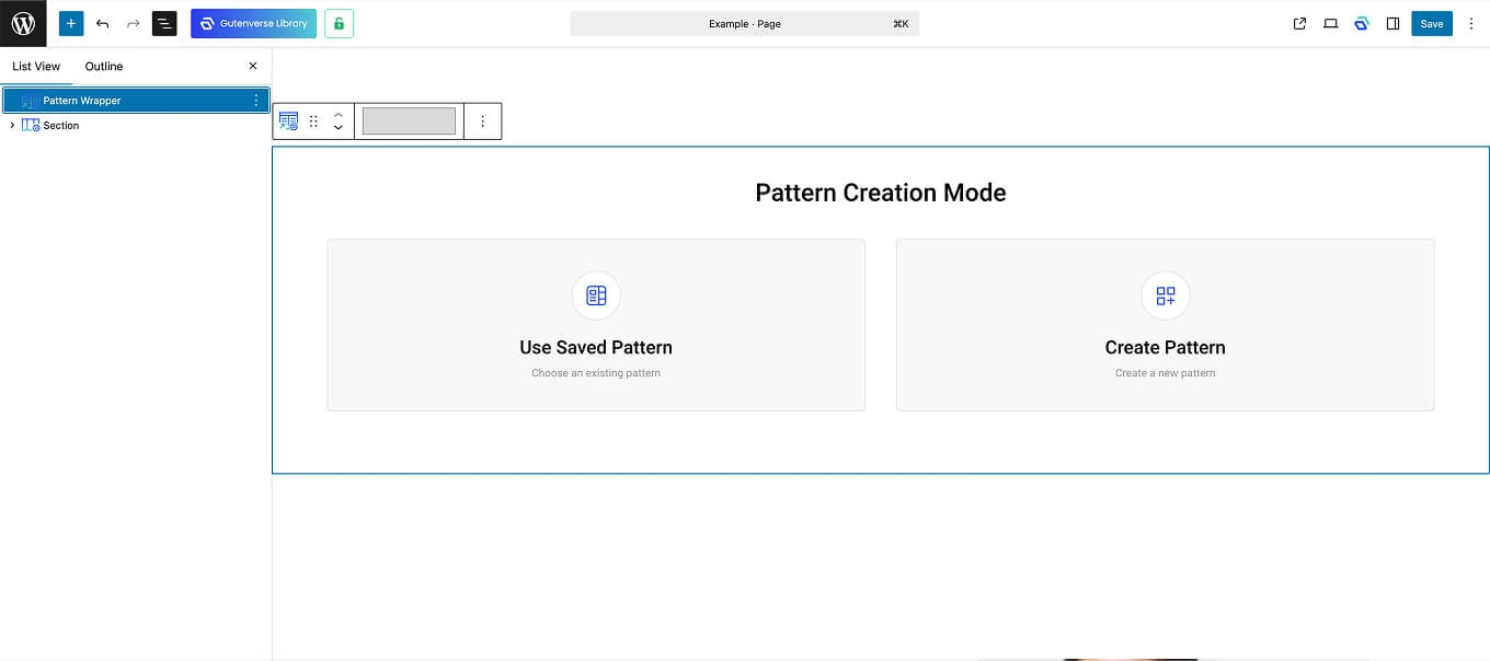 After adding the Pattern Wrapper block, you’ll see a screen like this: