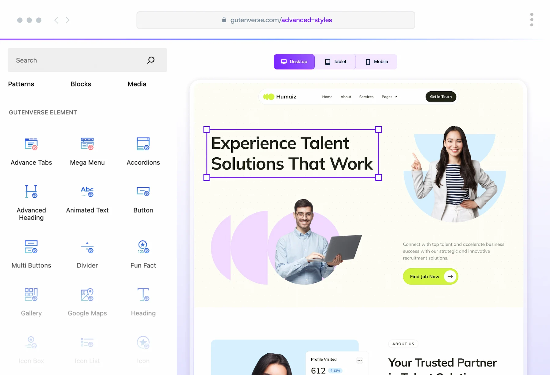 Take full control with global styles, responsive layouts, and powerful text effects for modern websites.