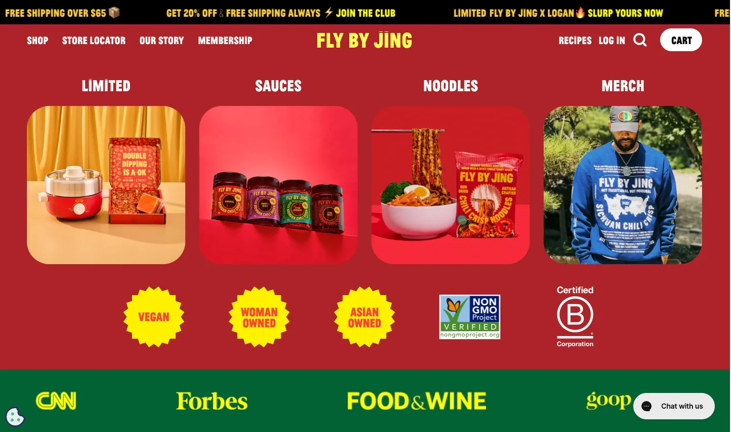 Fly By Jing is a great example. It’s a chili oil brand, and their site is full of vibrant color, but it all feels cohesive. Nothing looks random.