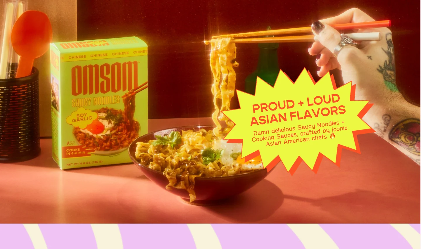 Omsom nails the same idea with bold colors and confident typography. It’s a food brand that helps people cook iconic Asian dishes at home using bold flavors and ingredients that are not always easy to find. Their site looks as bold as their flavors.