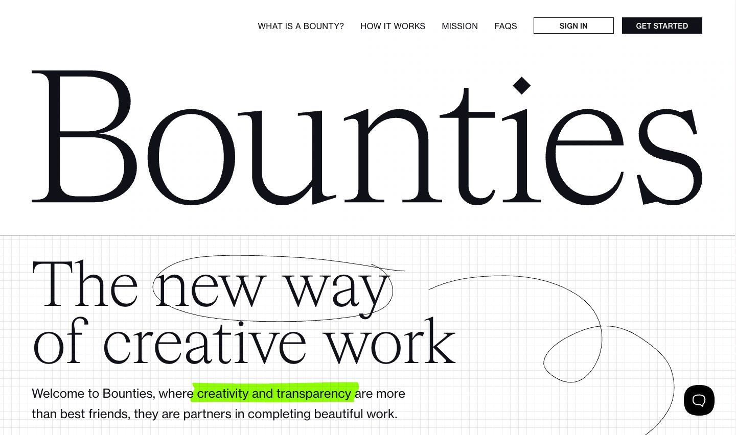 Bounties is a clean example of typography doing the work without trying too hard. The first thing you notice is the headline, and that’s the point. It’s big, it has space around it, and nothing on the page fights for attention. The smaller text stays in its lane, so the hierarchy feels obvious even if you only skim.