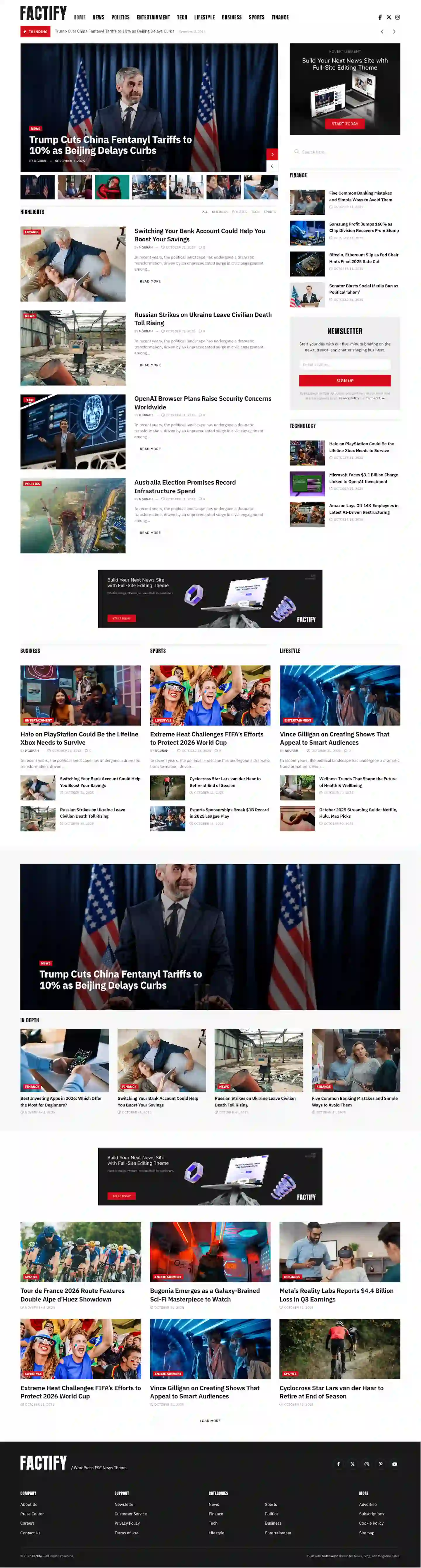 Factify PRO is a Full Site Editing (FSE) Gutenverse theme crafted for modern news and editorial platforms that value clarity, readability, and impactful storytelling. Built for online magazines, news portals, blogs, and content publishers, it enables you to present articles with a refined layout, bold typography, and a clean visual structure while offering flexible, block-based customization.