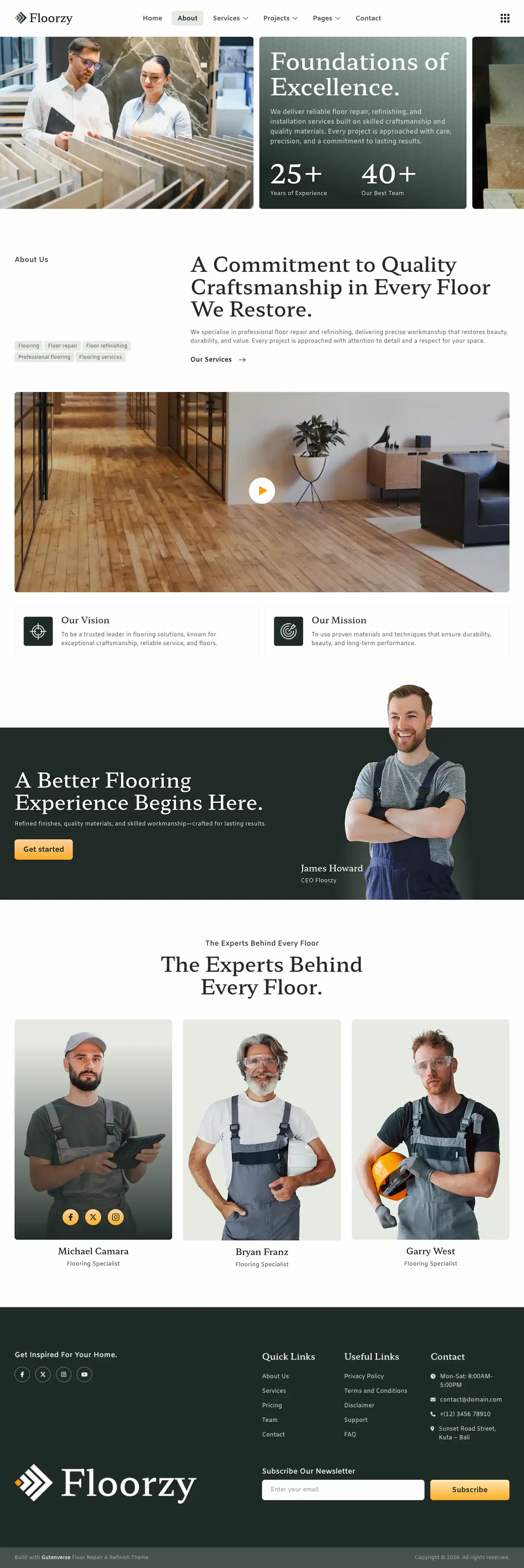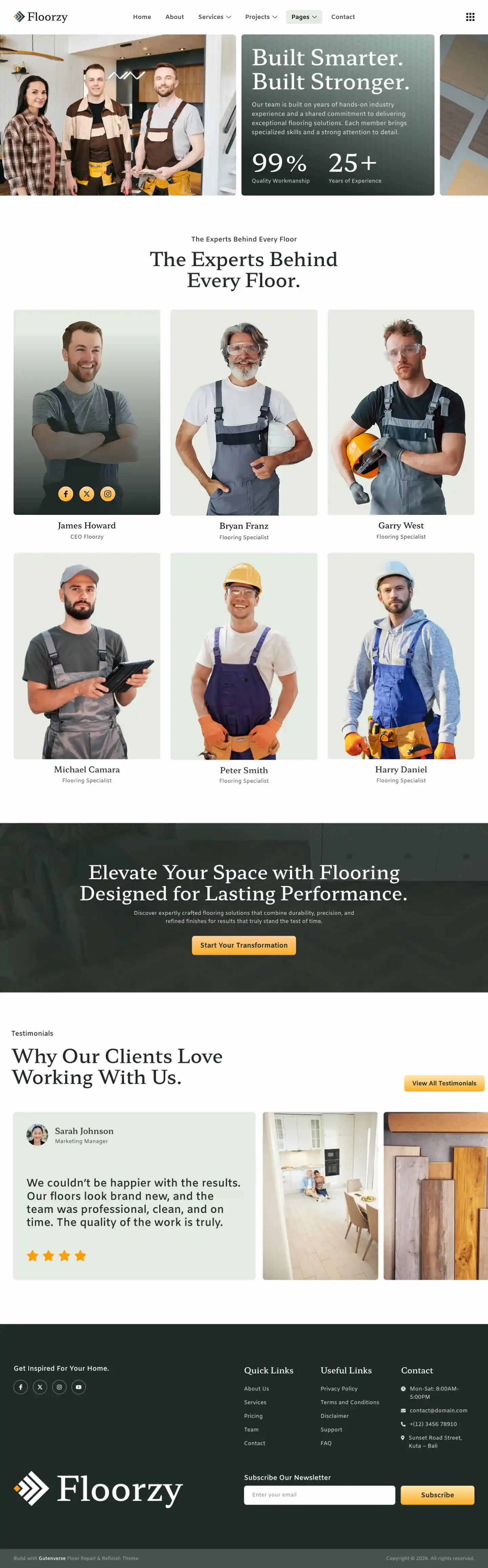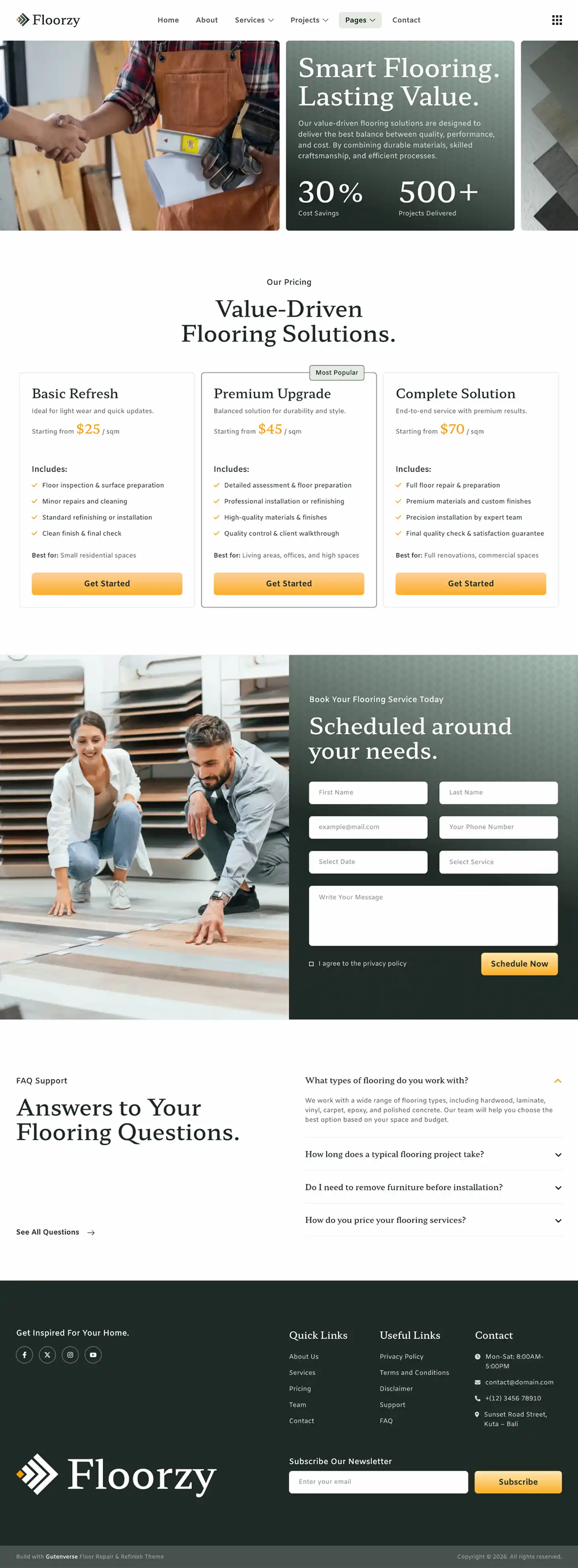 Floorzy PRO is a modern and clean fully responsive WordPress theme built for flooring, paving, and renovation businesses. With clean layouts, flexible design controls, and powerful customization tools, it makes building a professional service website simple and efficient. Showcase your expertise, highlight projects, and convert visitors into clients with ease.