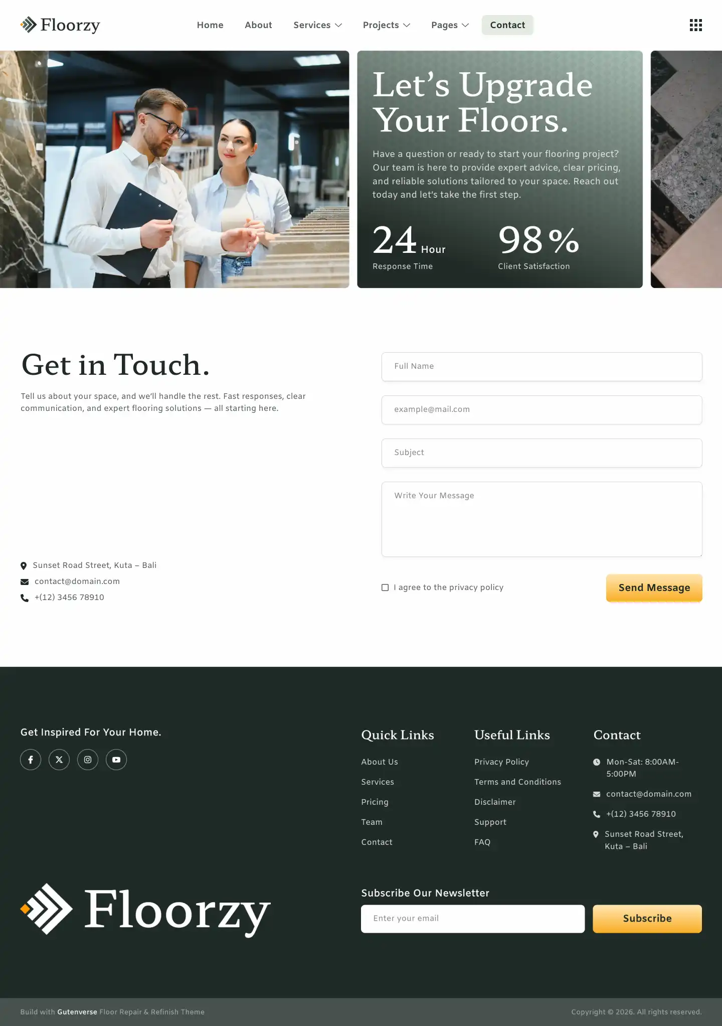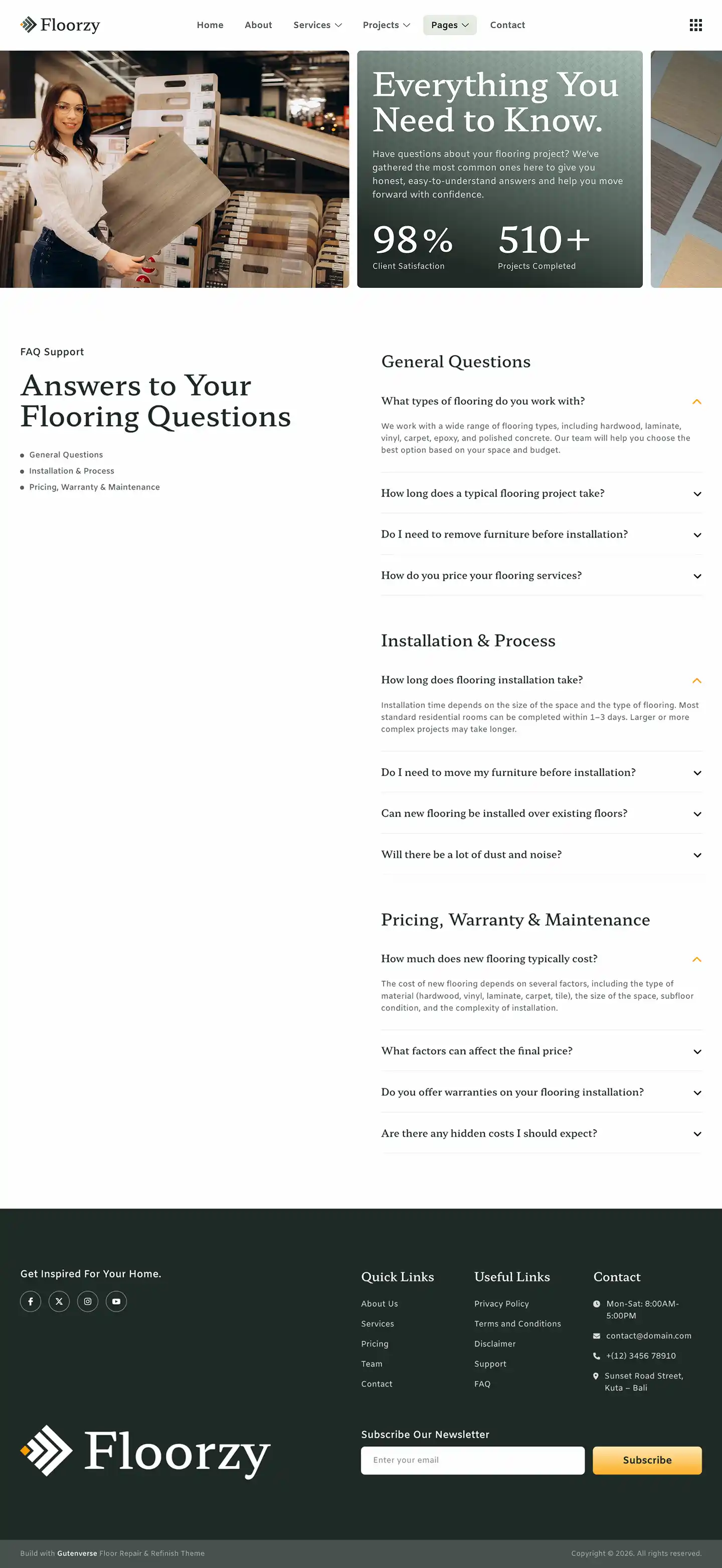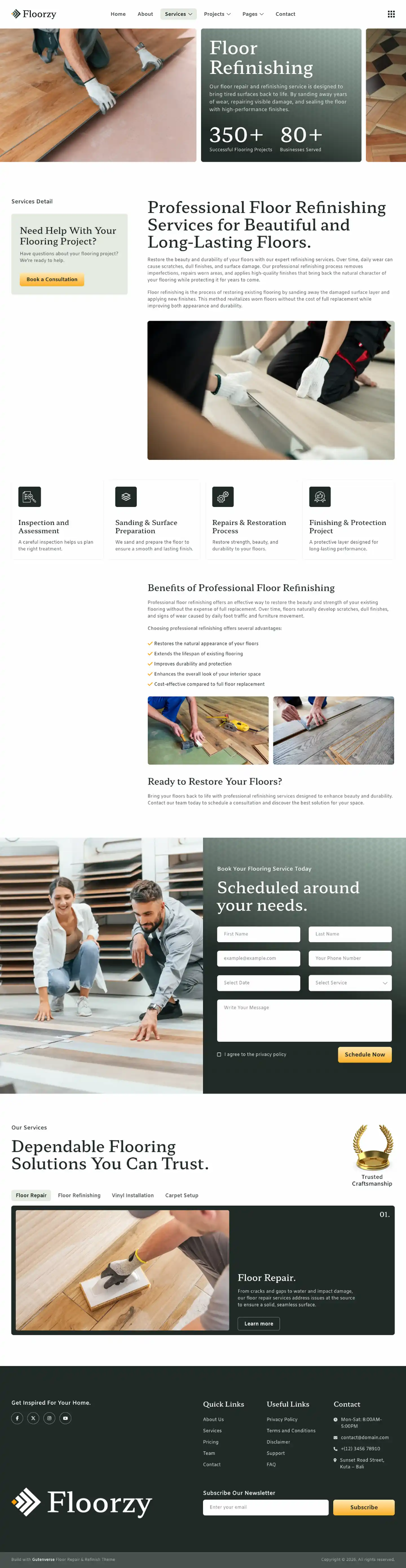 Floorzy PRO is a modern and clean fully responsive WordPress theme built for flooring, paving, and renovation businesses. With clean layouts, flexible design controls, and powerful customization tools, it makes building a professional service website simple and efficient. Showcase your expertise, highlight projects, and convert visitors into clients with ease.