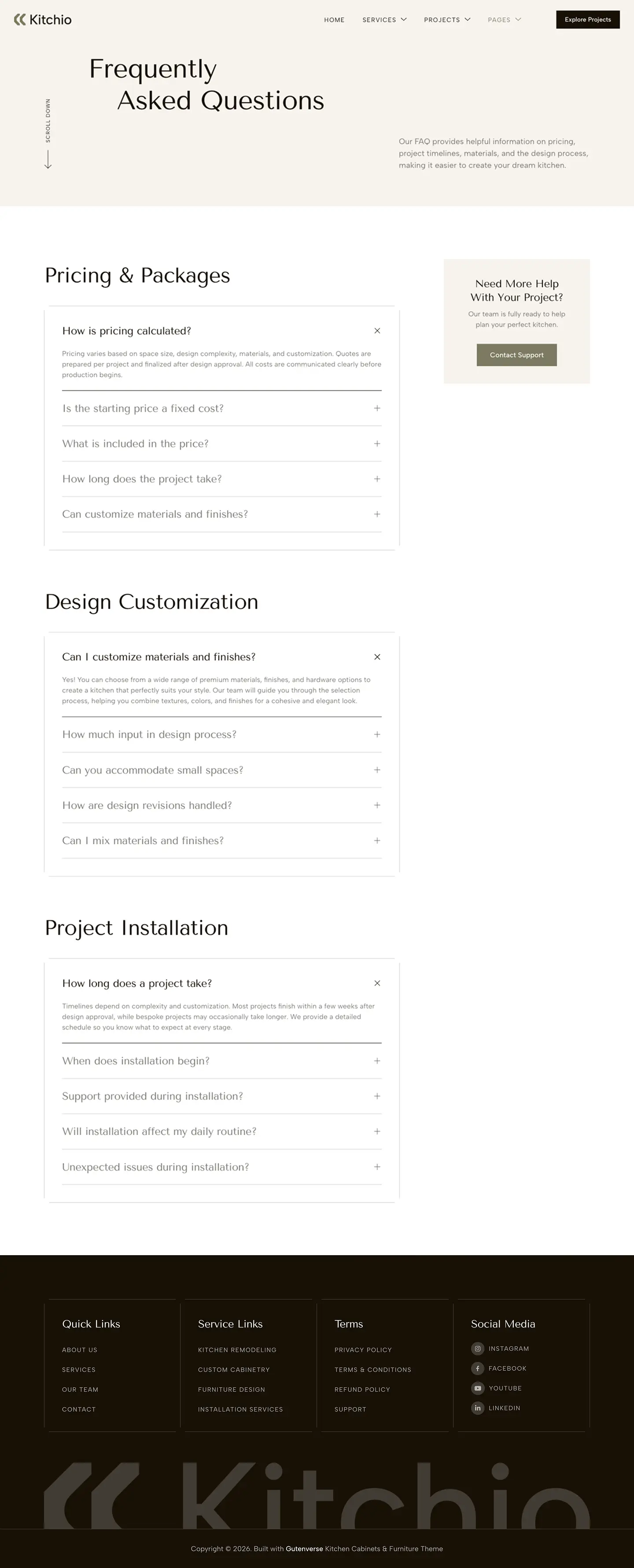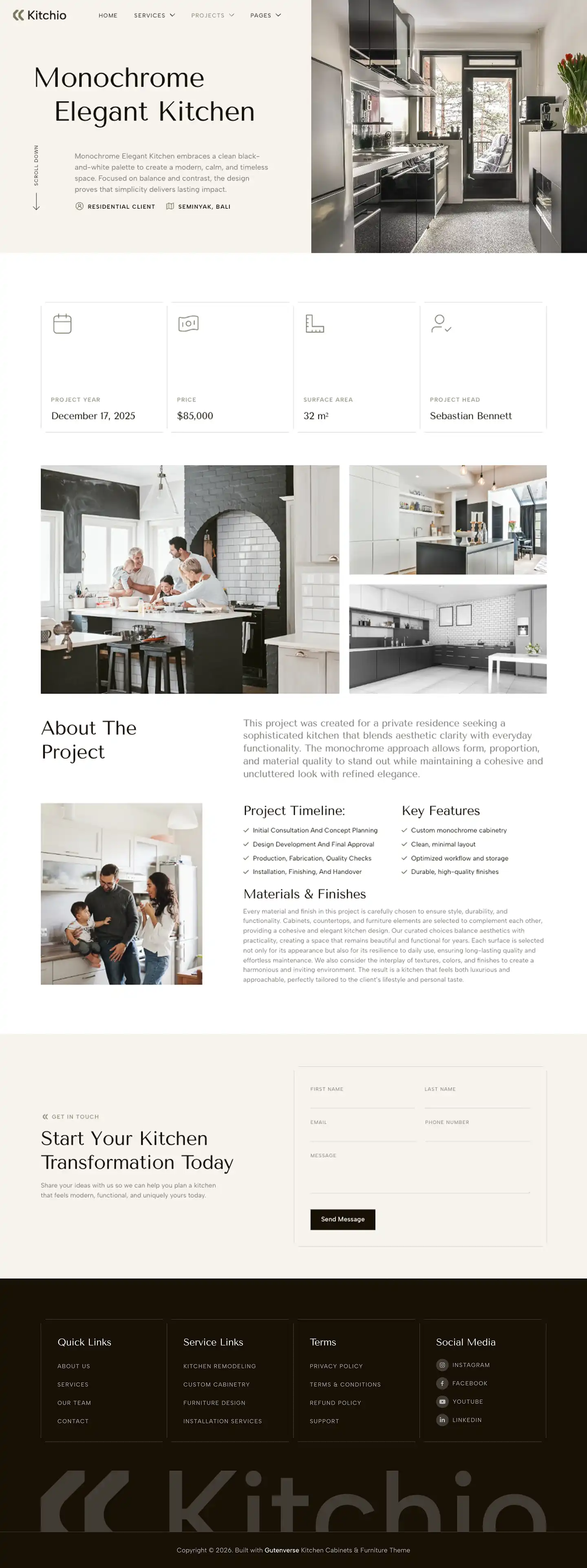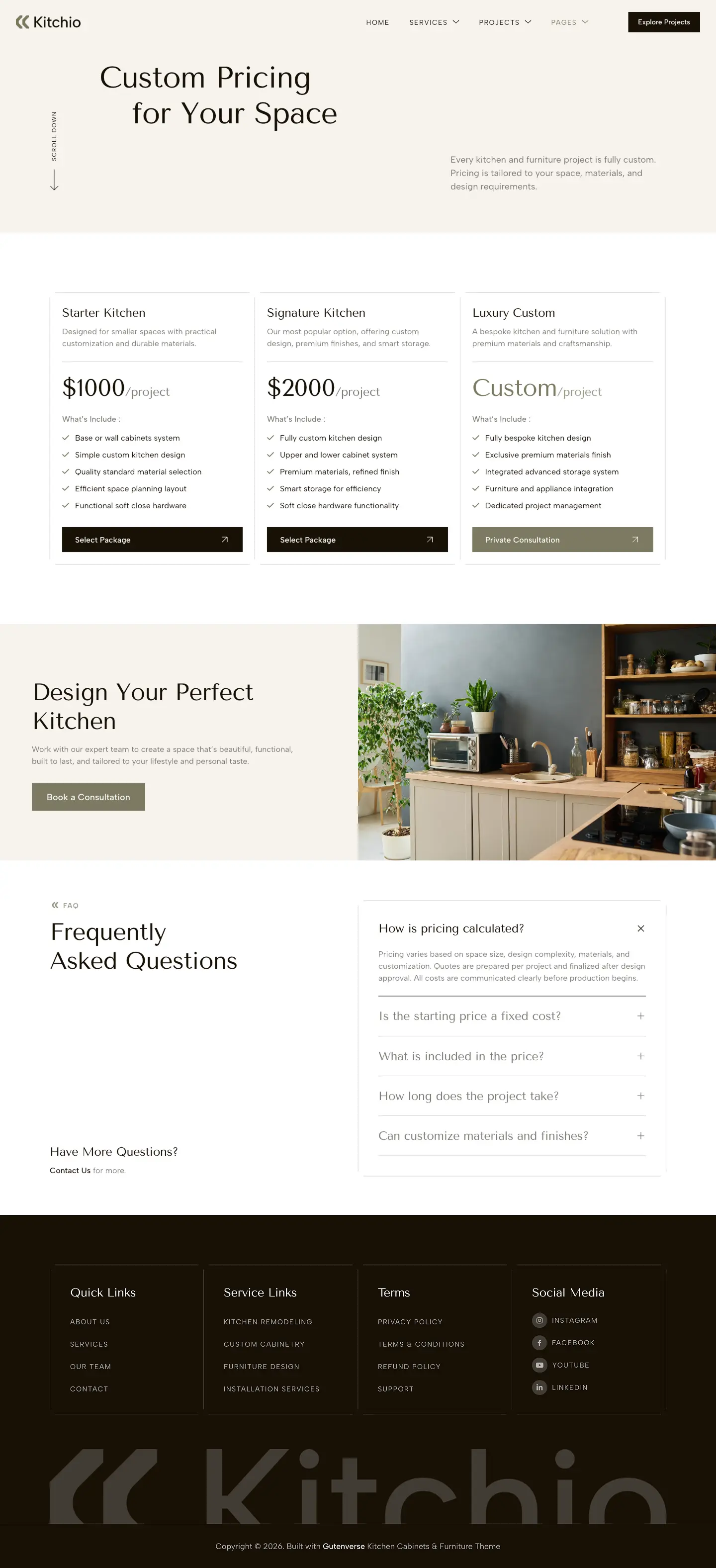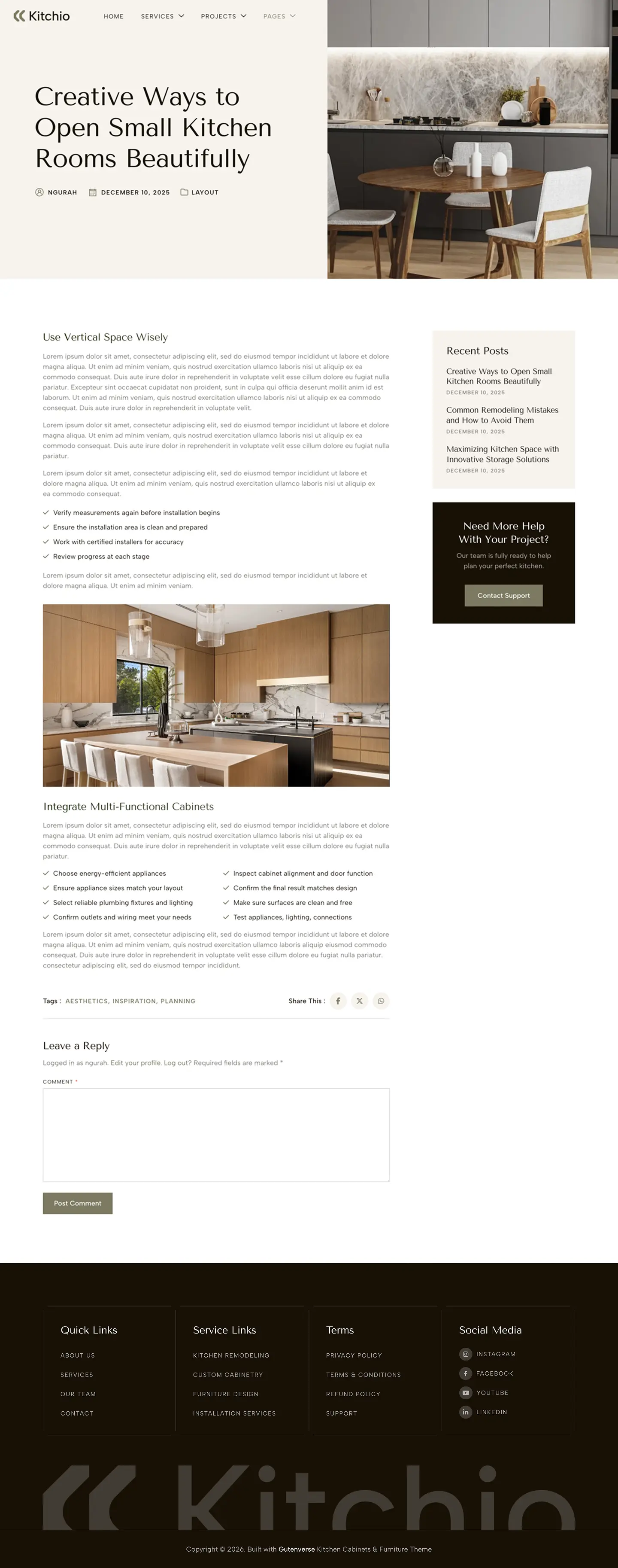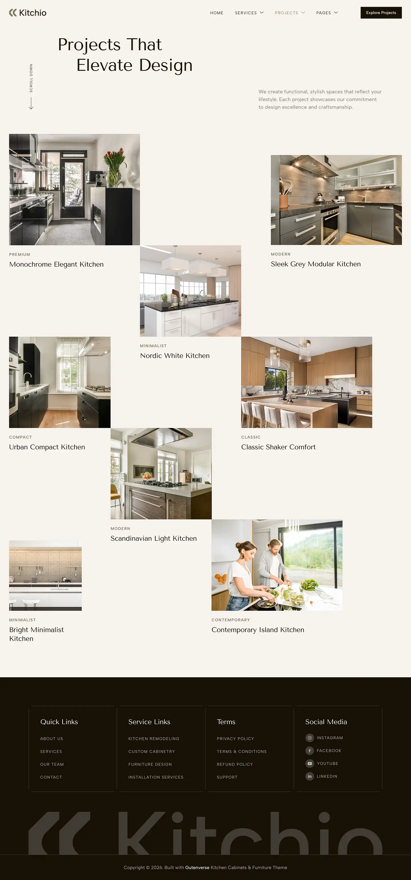Kitchio PRO is a Full Site Editing (FSE) Gutenverse theme crafted for kitchen-focused businesses that value clarity, craftsmanship, and visual impact. Built for kitchen studios, cabinet makers, interior designers, furniture brands, and custom woodworking professionals, Kitchio enables you to present your work with confidence.