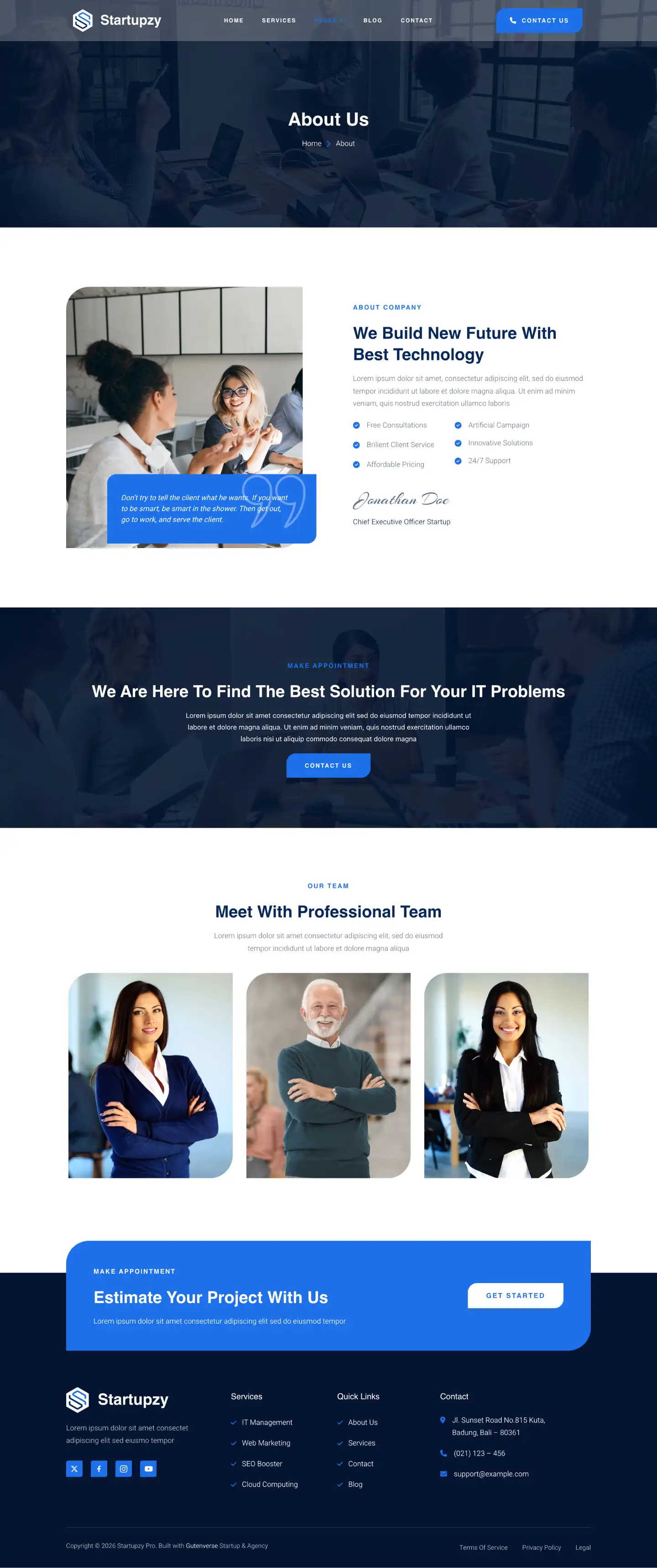 Startupzy PRO Is a bold and modern design, perfect for building websites for tech startups and innovative digital ventures. Ideal for SaaS companies, app developers, tech incubators, product teams, and early-stage startups.