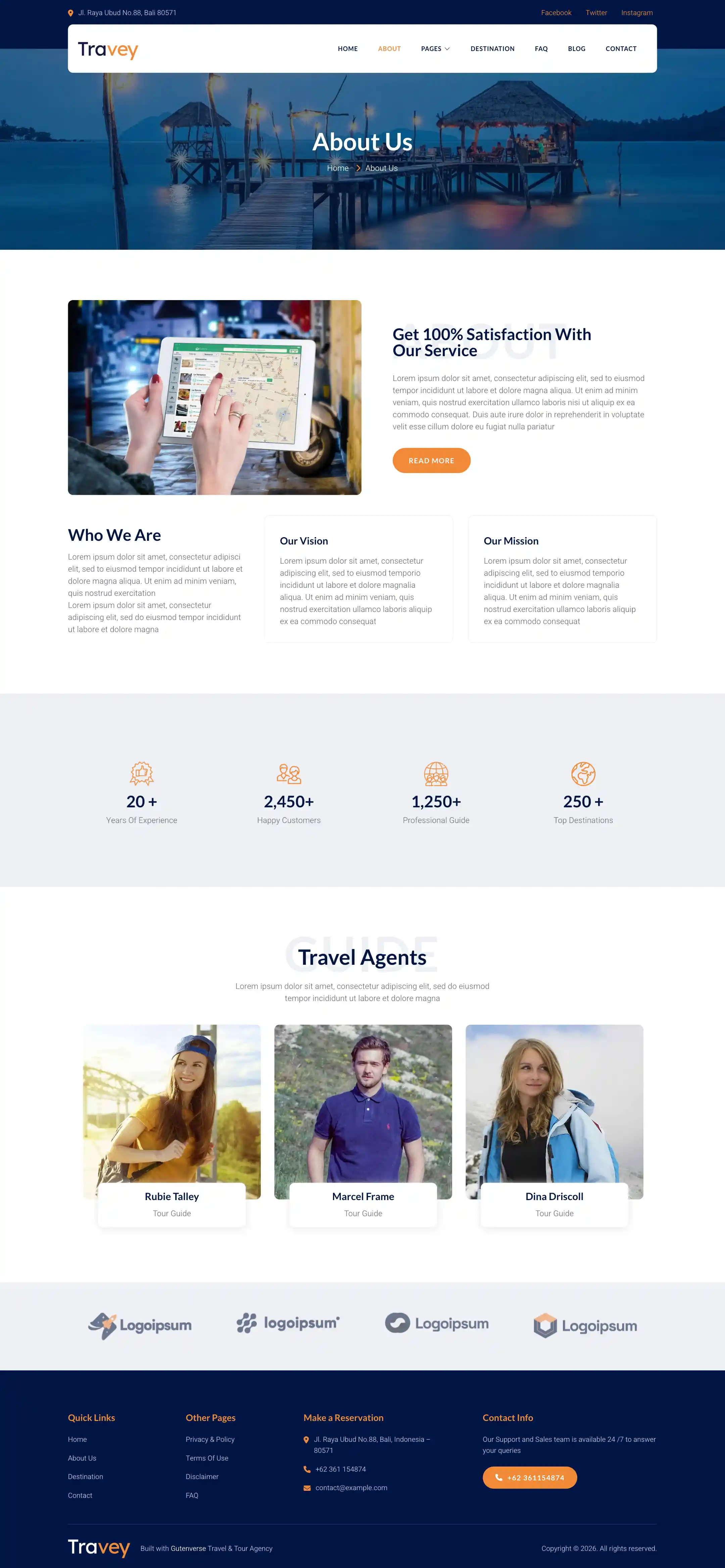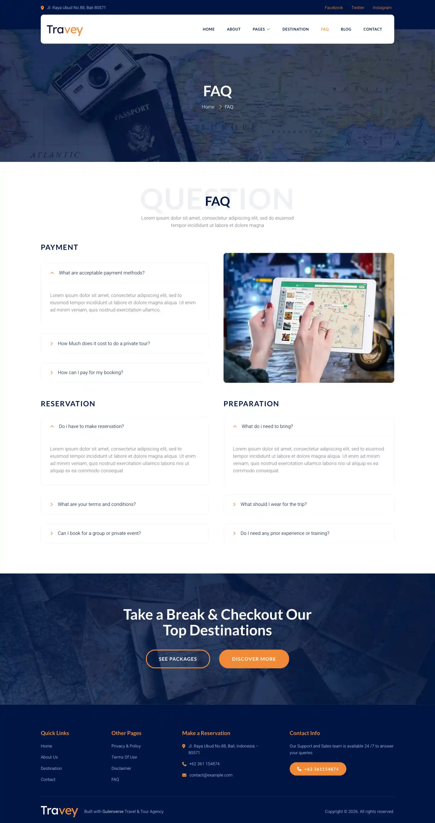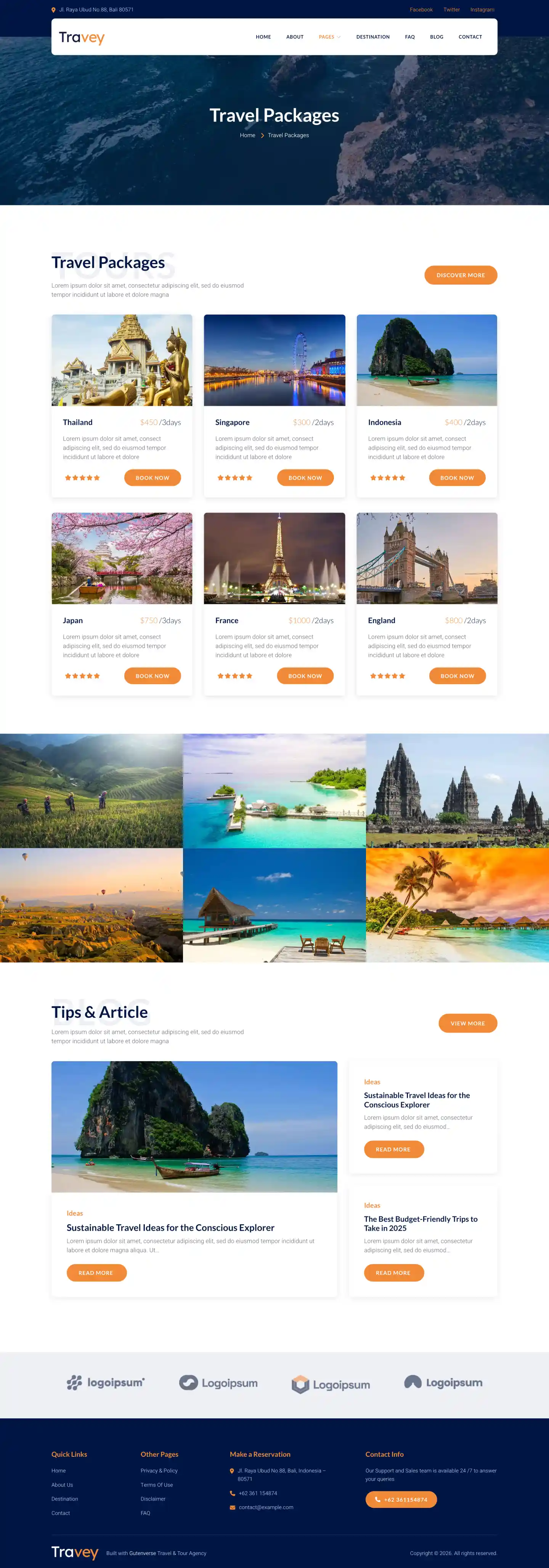 Travey PRO is a simple, responsive, and elegant looking theme template for WordPress fullsite editing and fully compatible with Gutenverse plugin. Travey’s created especially for Travel Agency, Tour Operator, Adventurer, Tourism, Destination Trips, Holiday and other similar businesses. The templates includes both core version and Gutenverse plugin version, also has core and Gutenverse block patterns ready so you can start mix and match your template parts as you desire. The templates is built ready so you don't need to build it from scratch. We want to make your experience using WordPress fullsite editor more convenient.