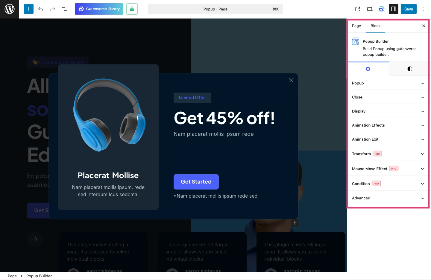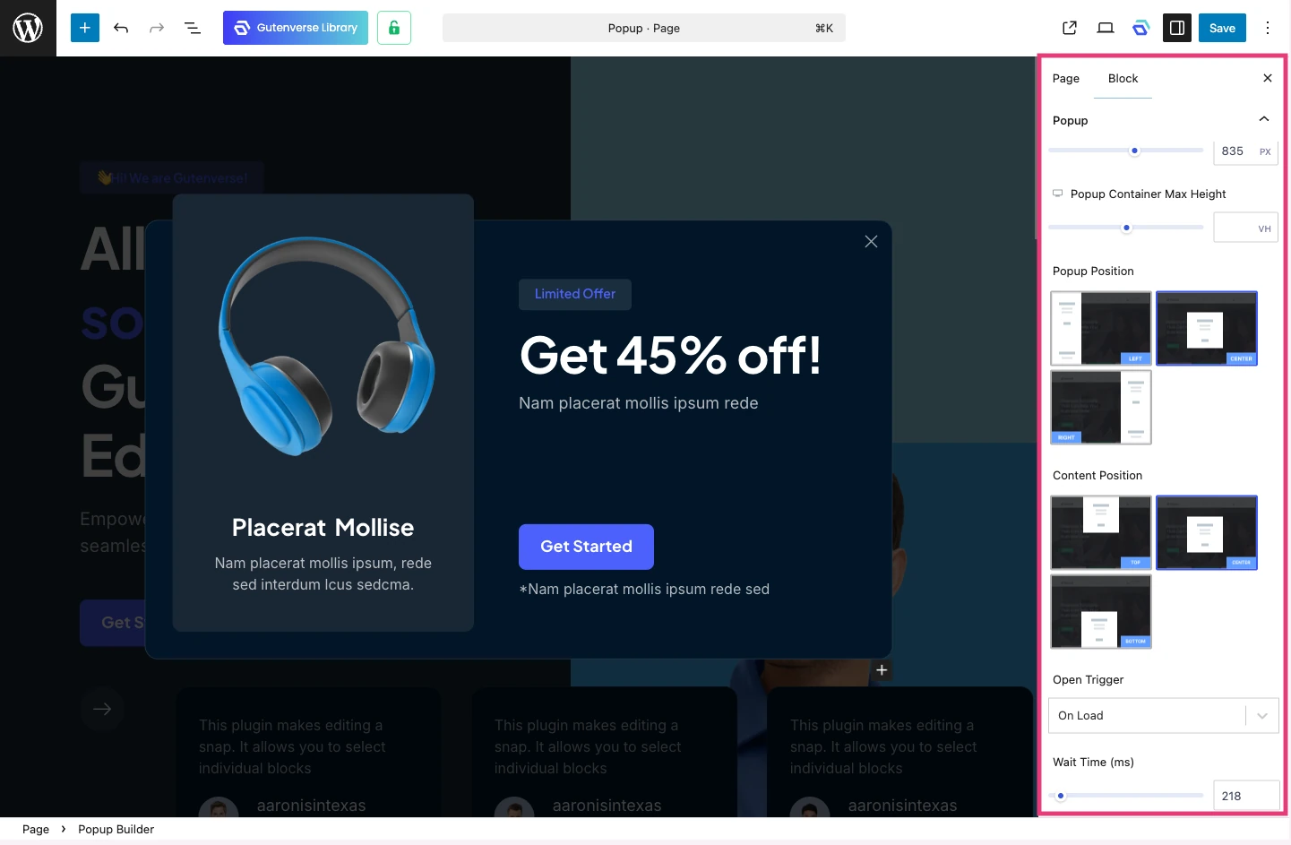 With Gutenverse, you can skip the complicated setup and create professional popups quickly using Template Library and Popup Builder. Everything is made to help you work faster while keeping your design consistent across your site.