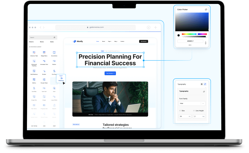 Finalize your design and bring your website to life. Hit Publish, and your site is ready for the digital universe with Gutenverse.