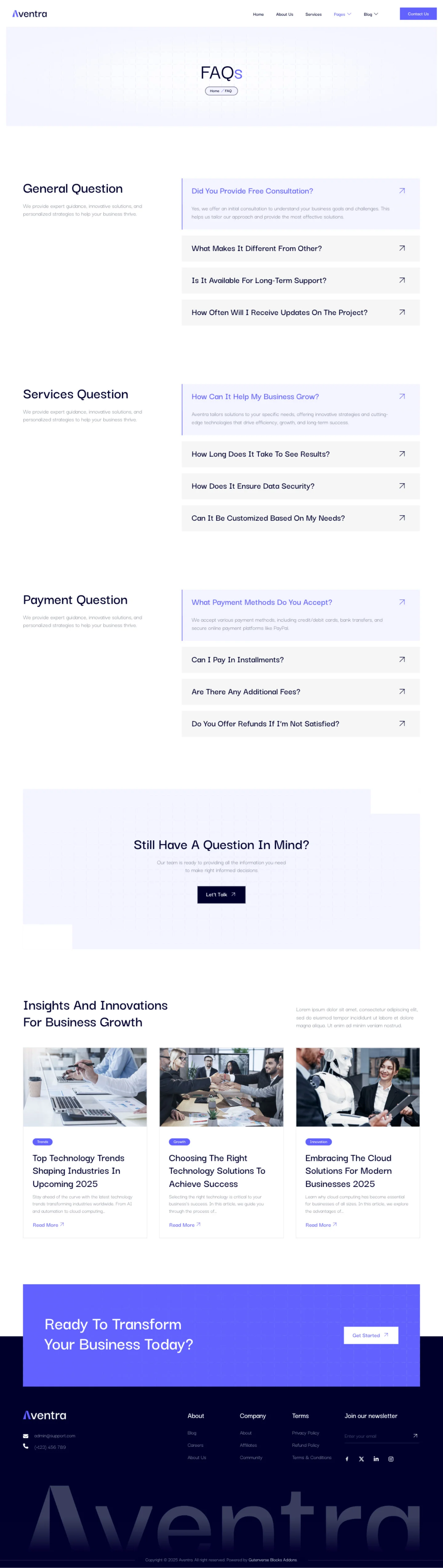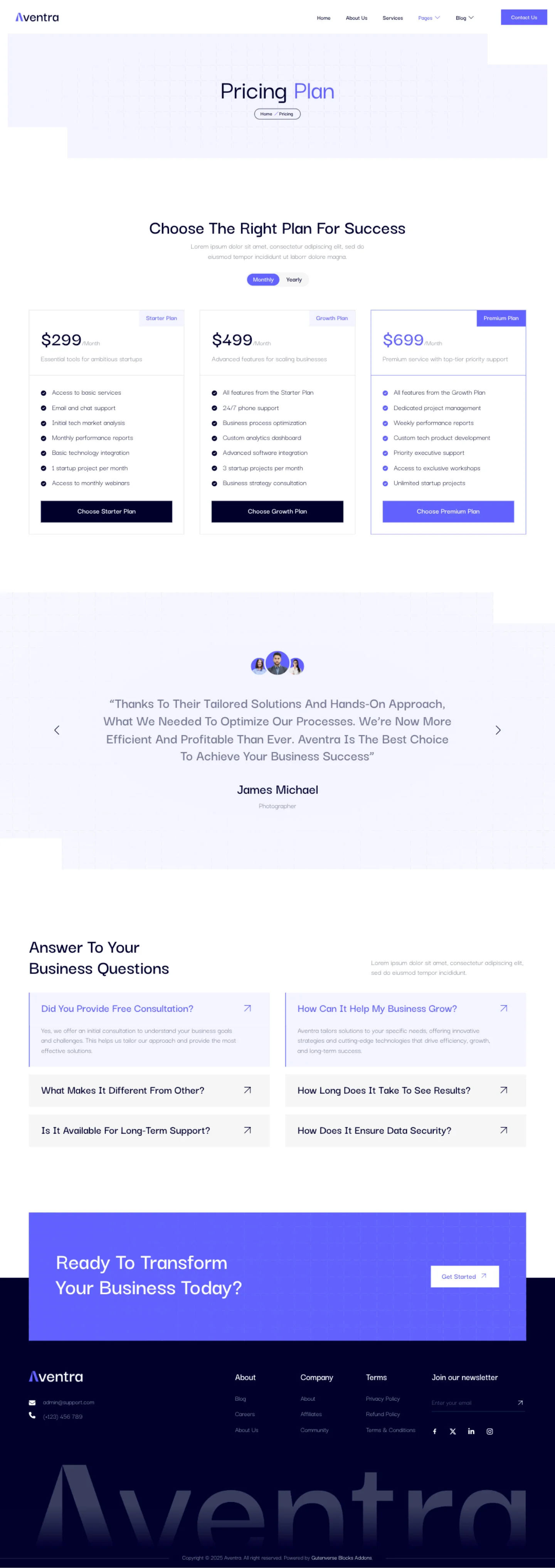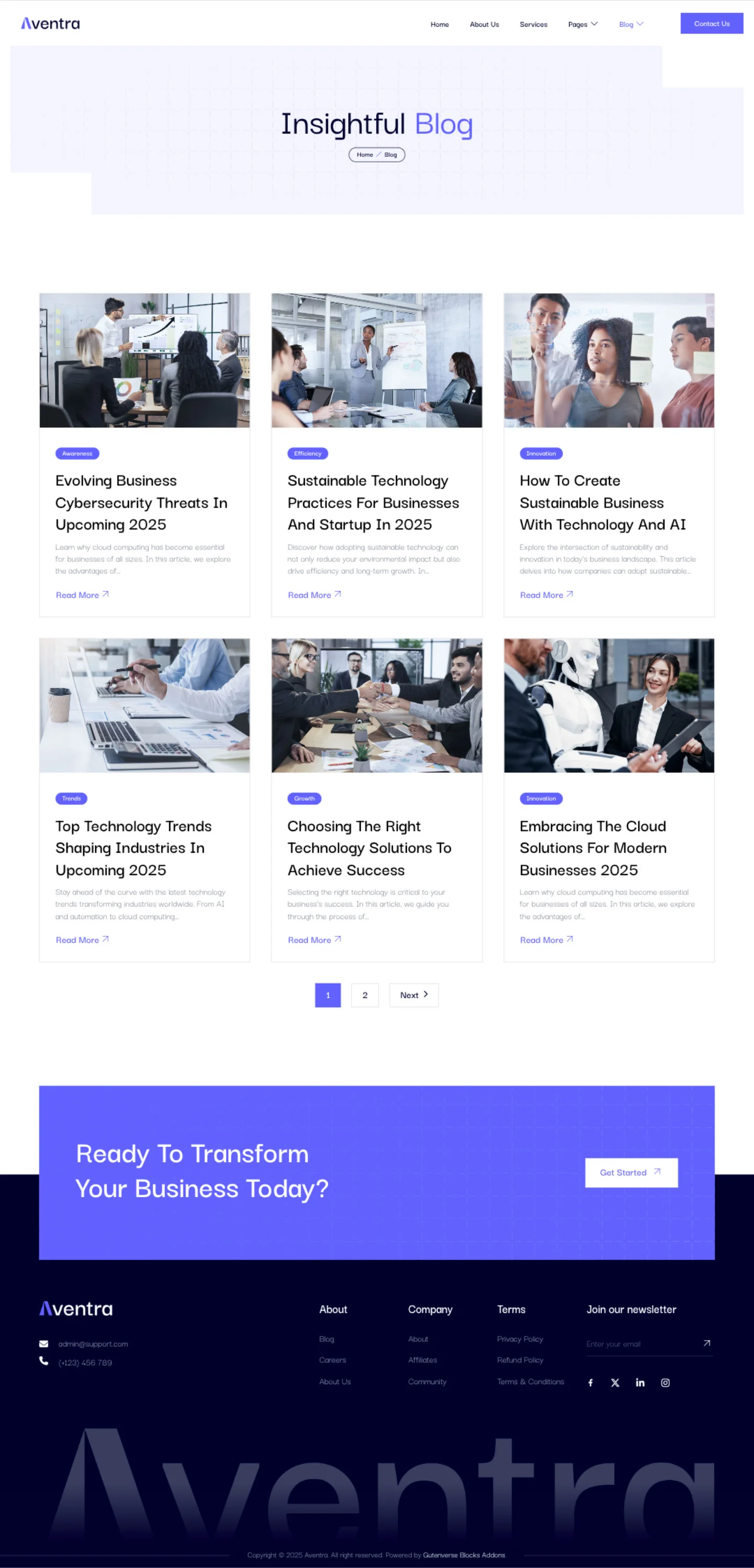Aventra brings a clean and modern design, perfect for creating professional websites for startups, agencies, consultants, and corporate firms. With its versatile layout and fully responsive structure, Aventra adapts seamlessly to all screen sizes helping your business make a strong and lasting impression online.