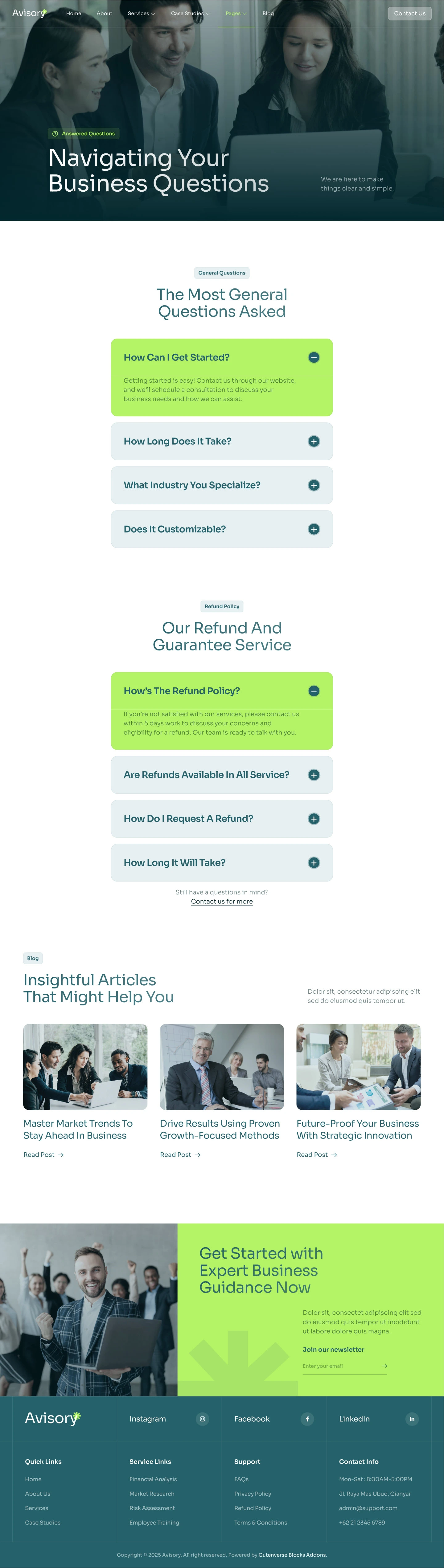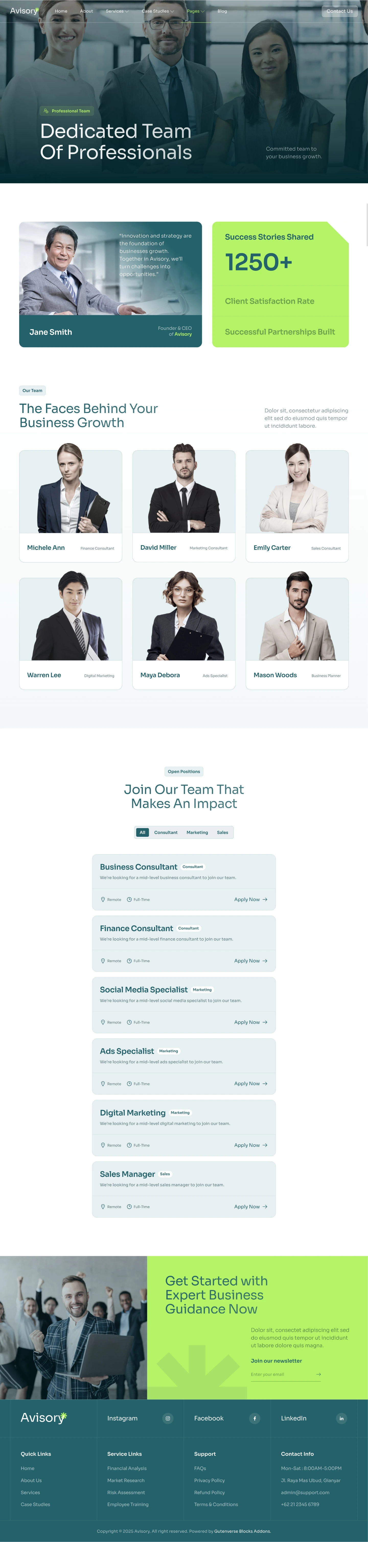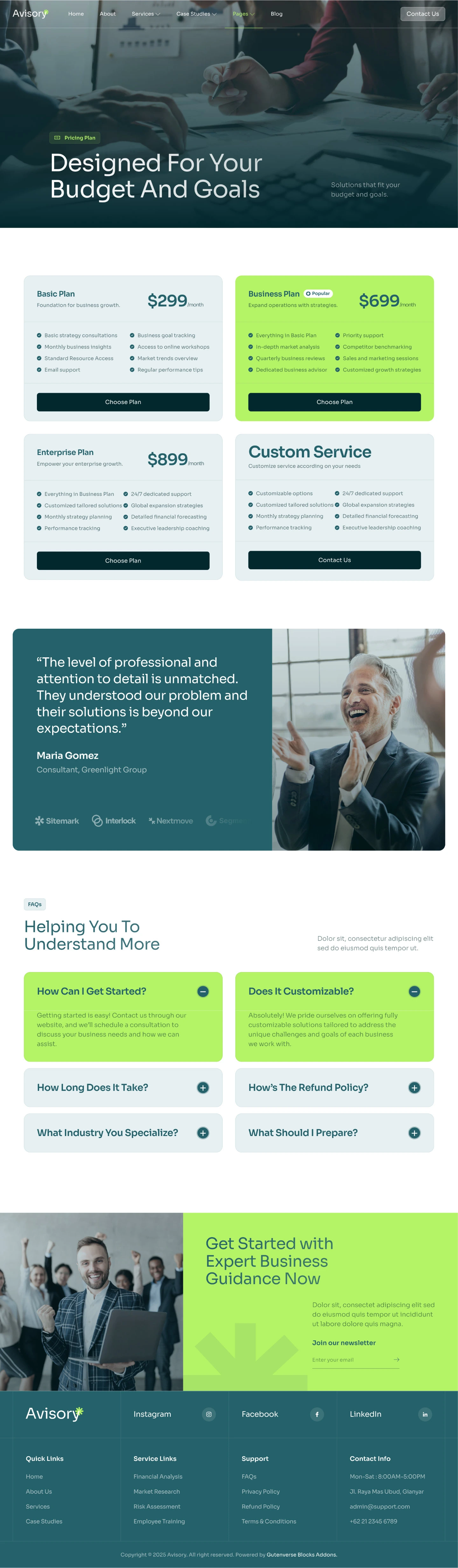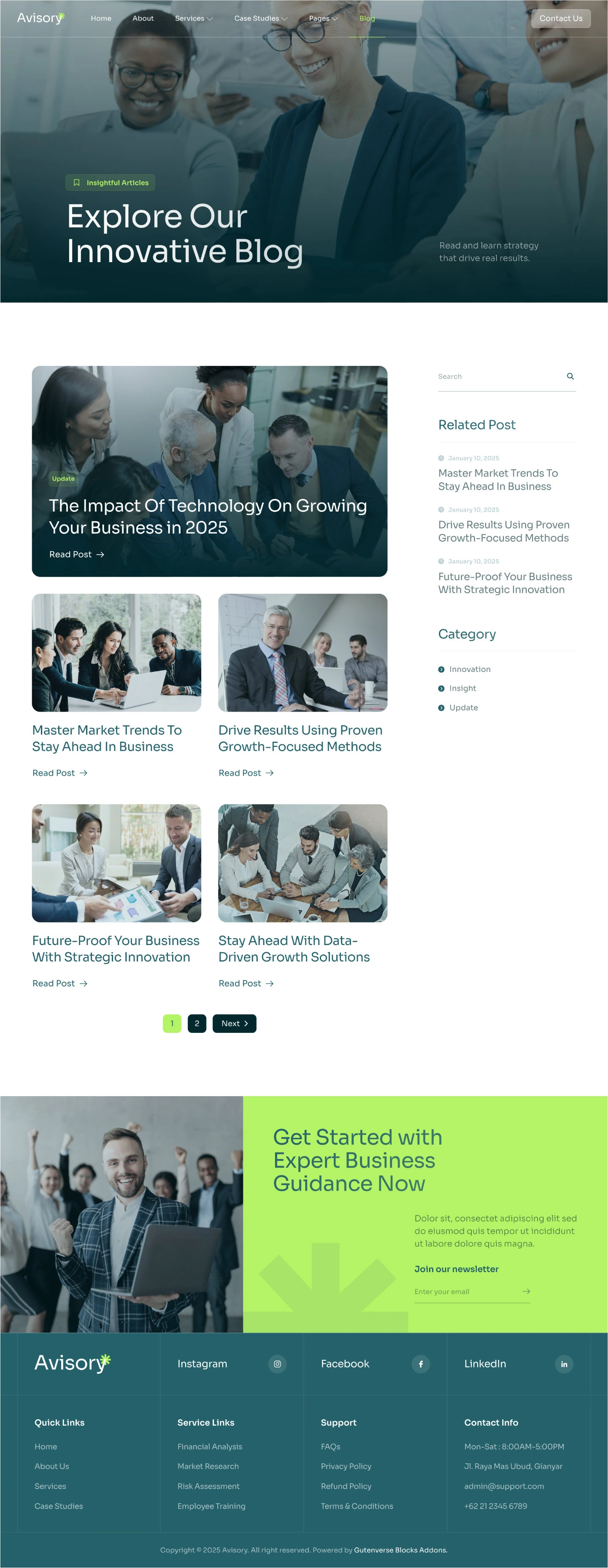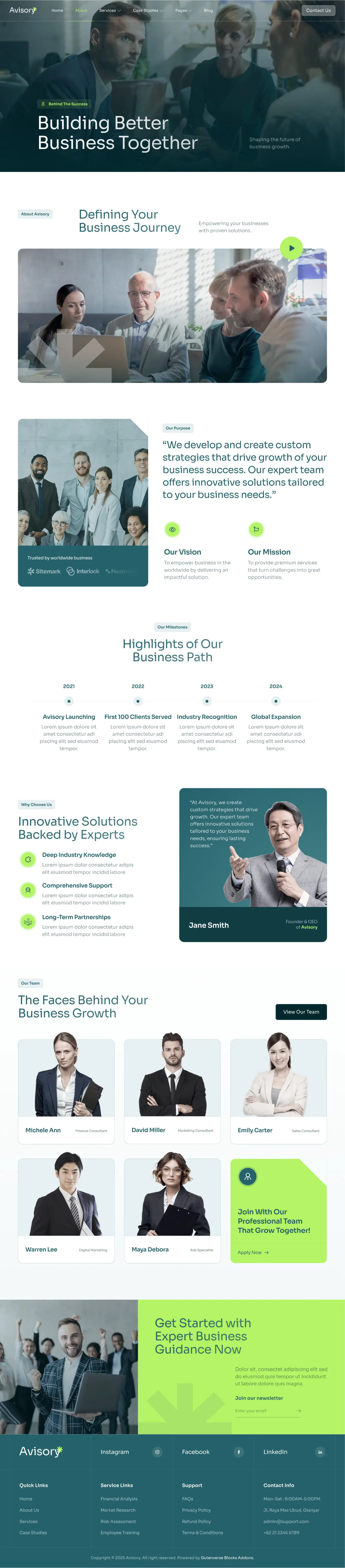 Avisory delivers a modern and professional design, perfect for finance advisors, consultants, and corporate firms. Its clean, unique layout builds trust, showcases expertise, and ensures a seamless browsing experience across all devices helping you connect with clients and elevate your brand.
