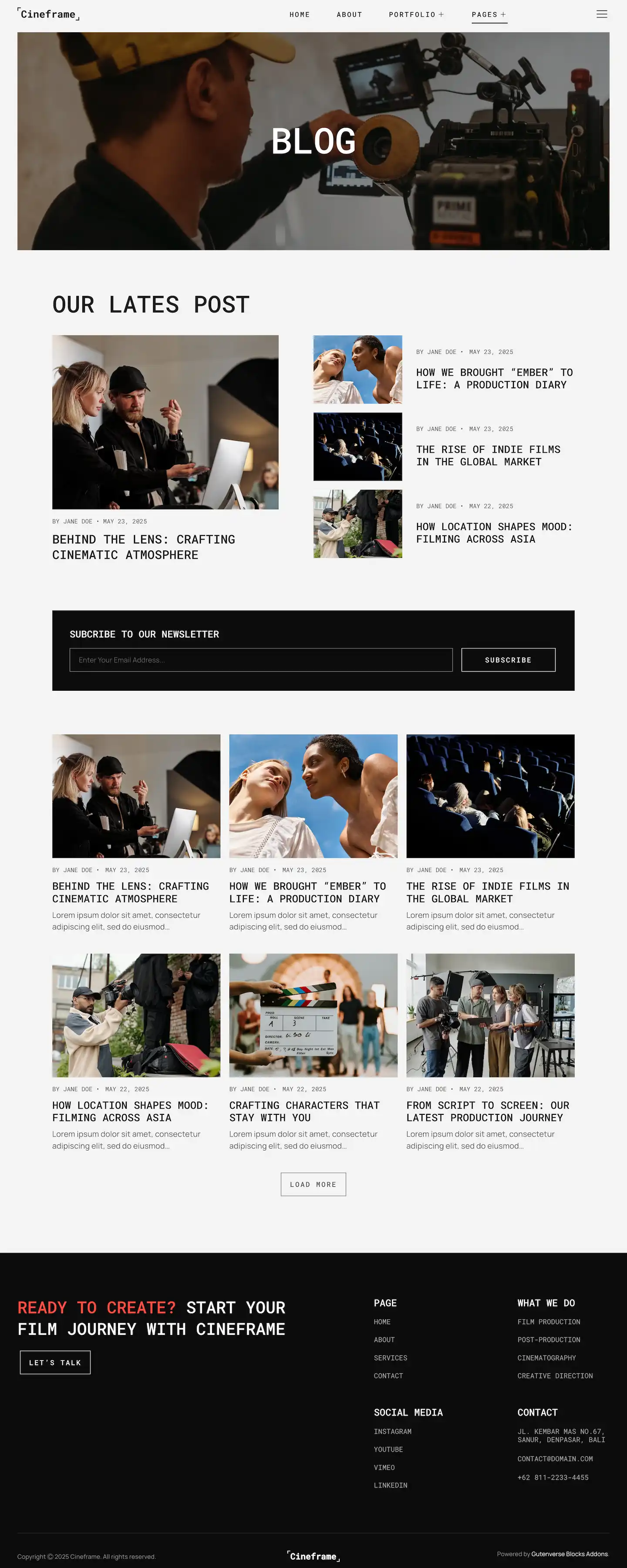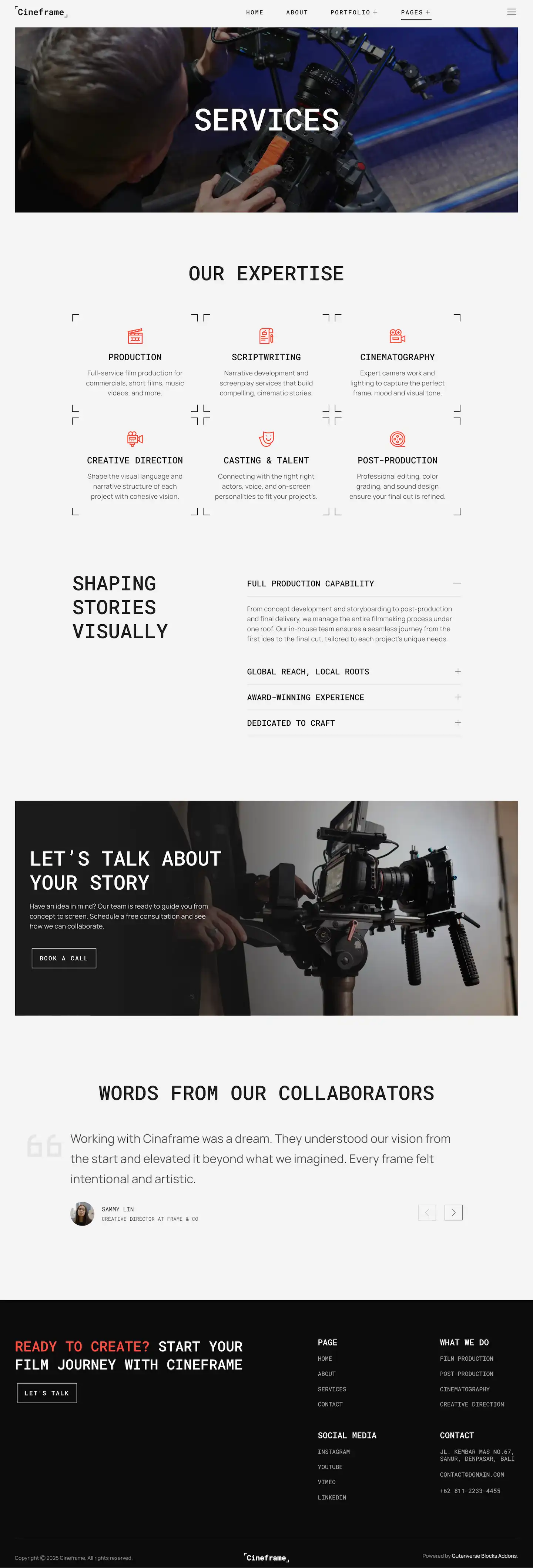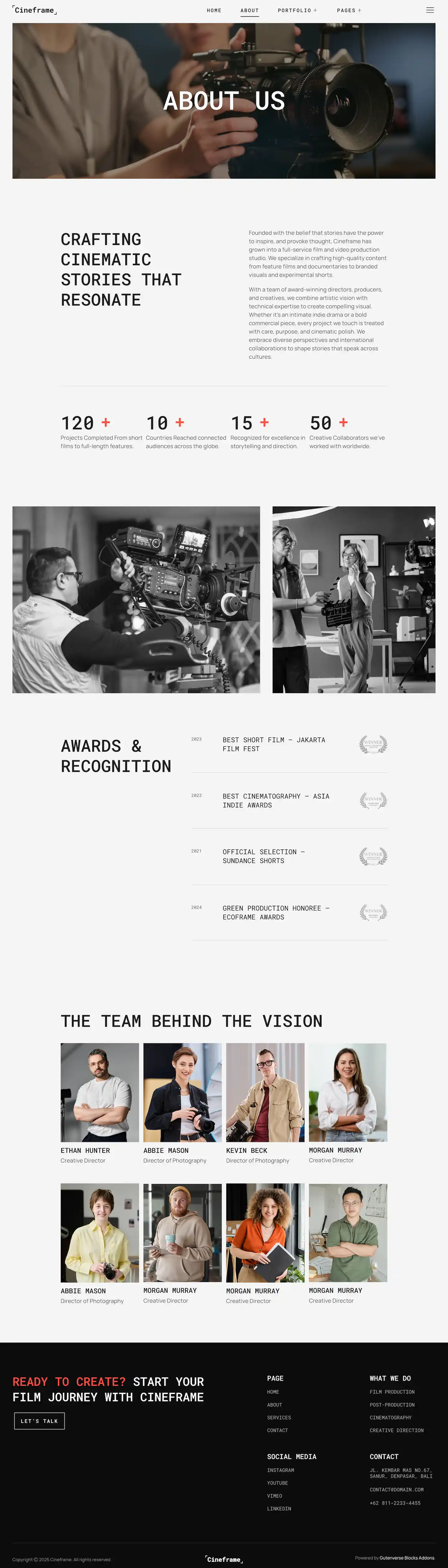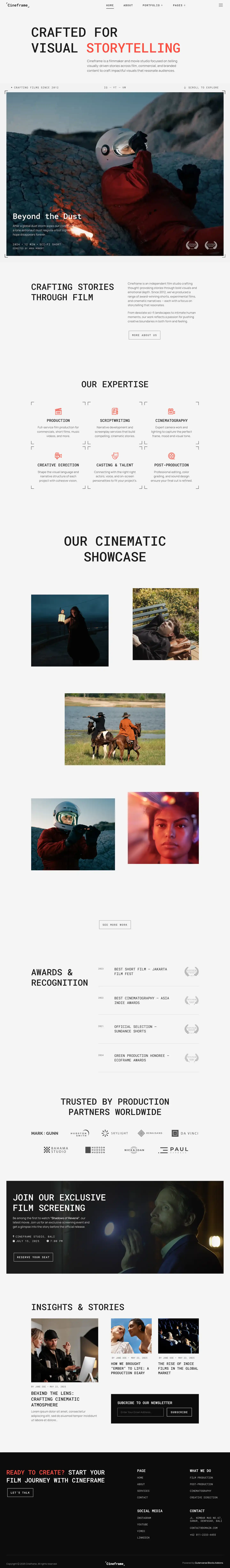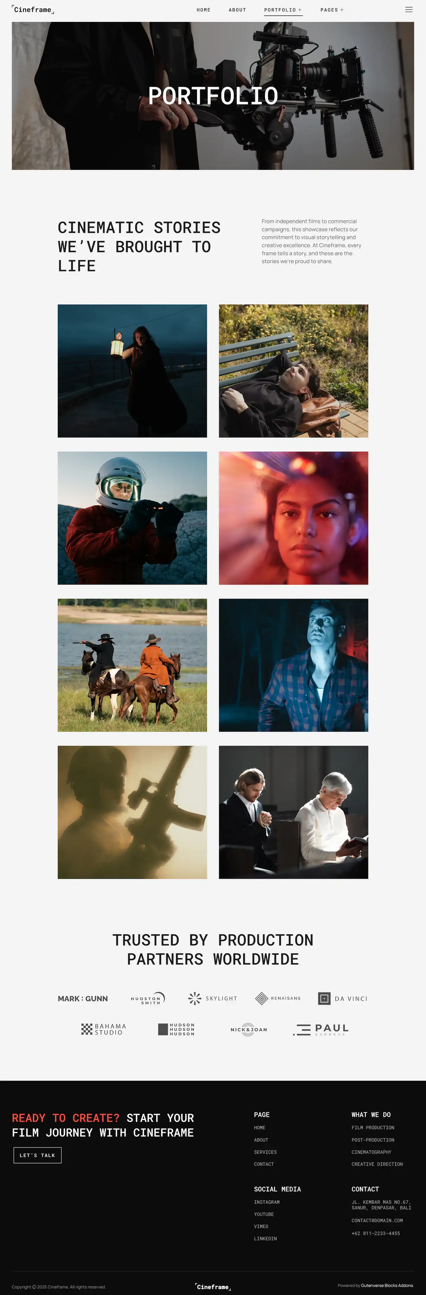 Cineframe delivers a sleek and modern design, ideal for filmmakers, movie studios, video production companies, directors, and cinematographers. Perfect for showcasing films, trailers, portfolios, or media services, it creates a visually striking online presence that captures attention and tells your story with impact.