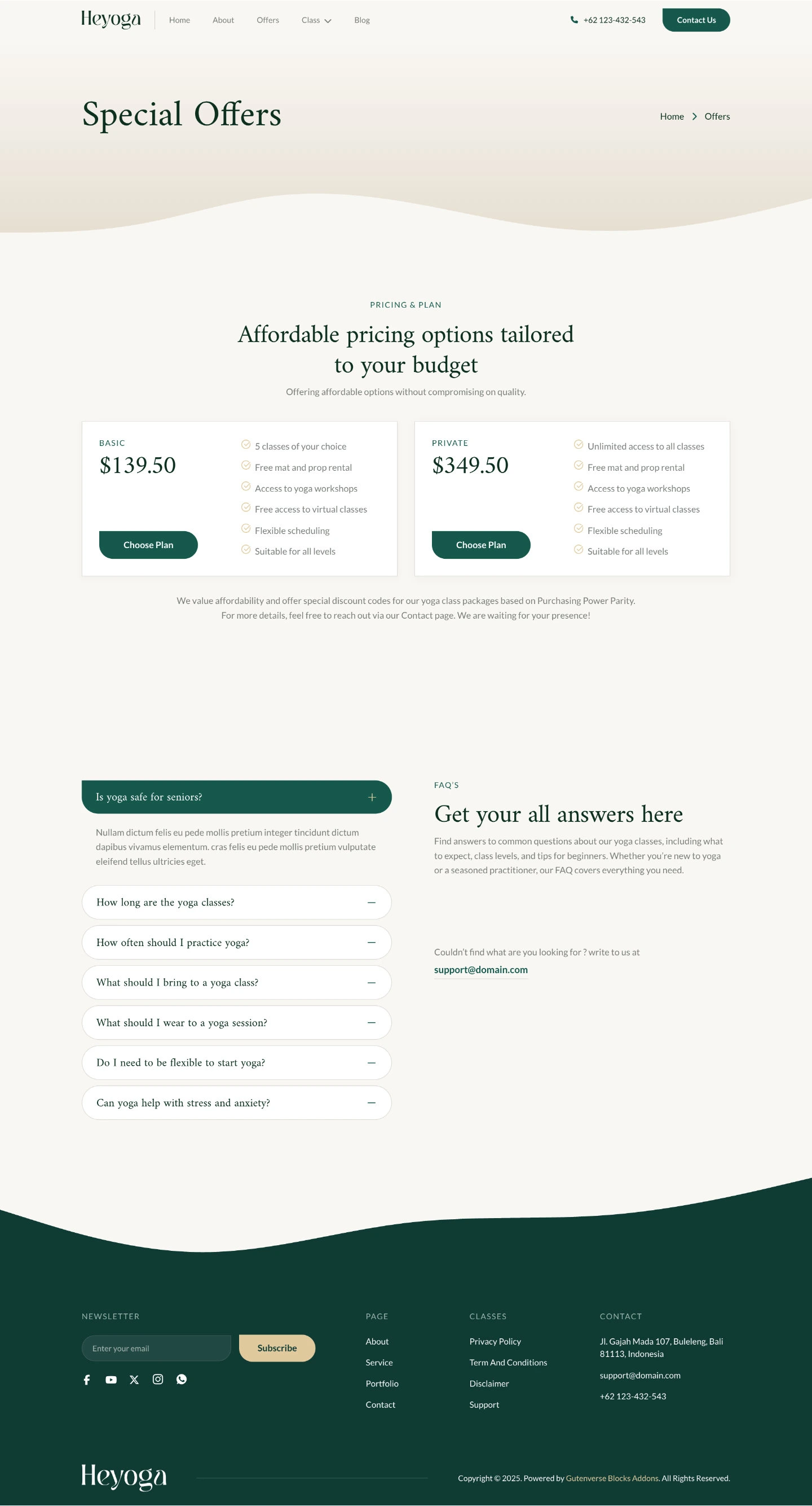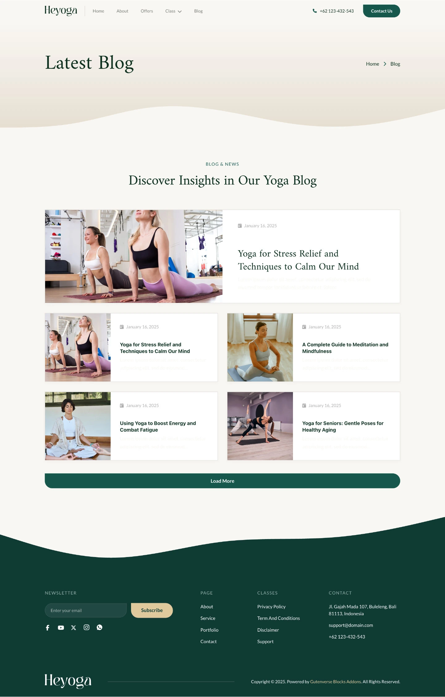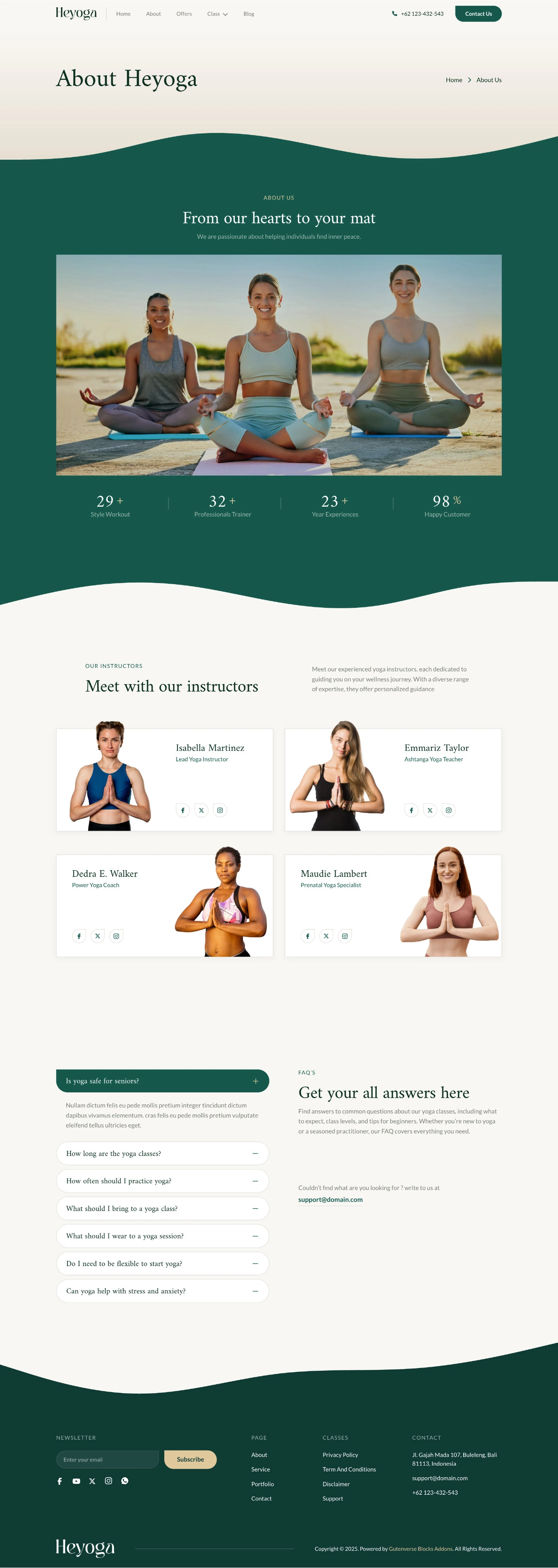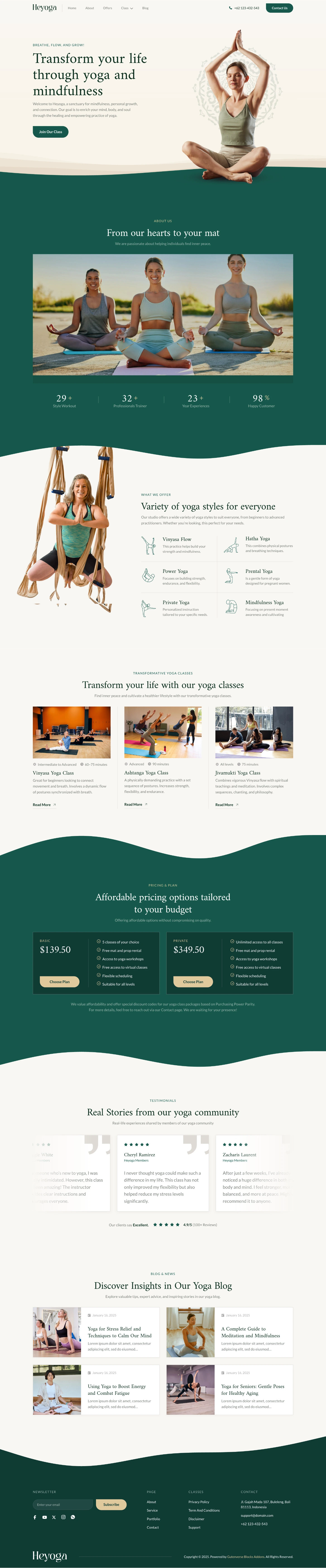 Heyoga features a minimalist and elegant design, perfect for yoga studios, instructors, and wellness centers. With its serene, modern layout and fully responsive design, it delivers a calming and seamless experience on any device.