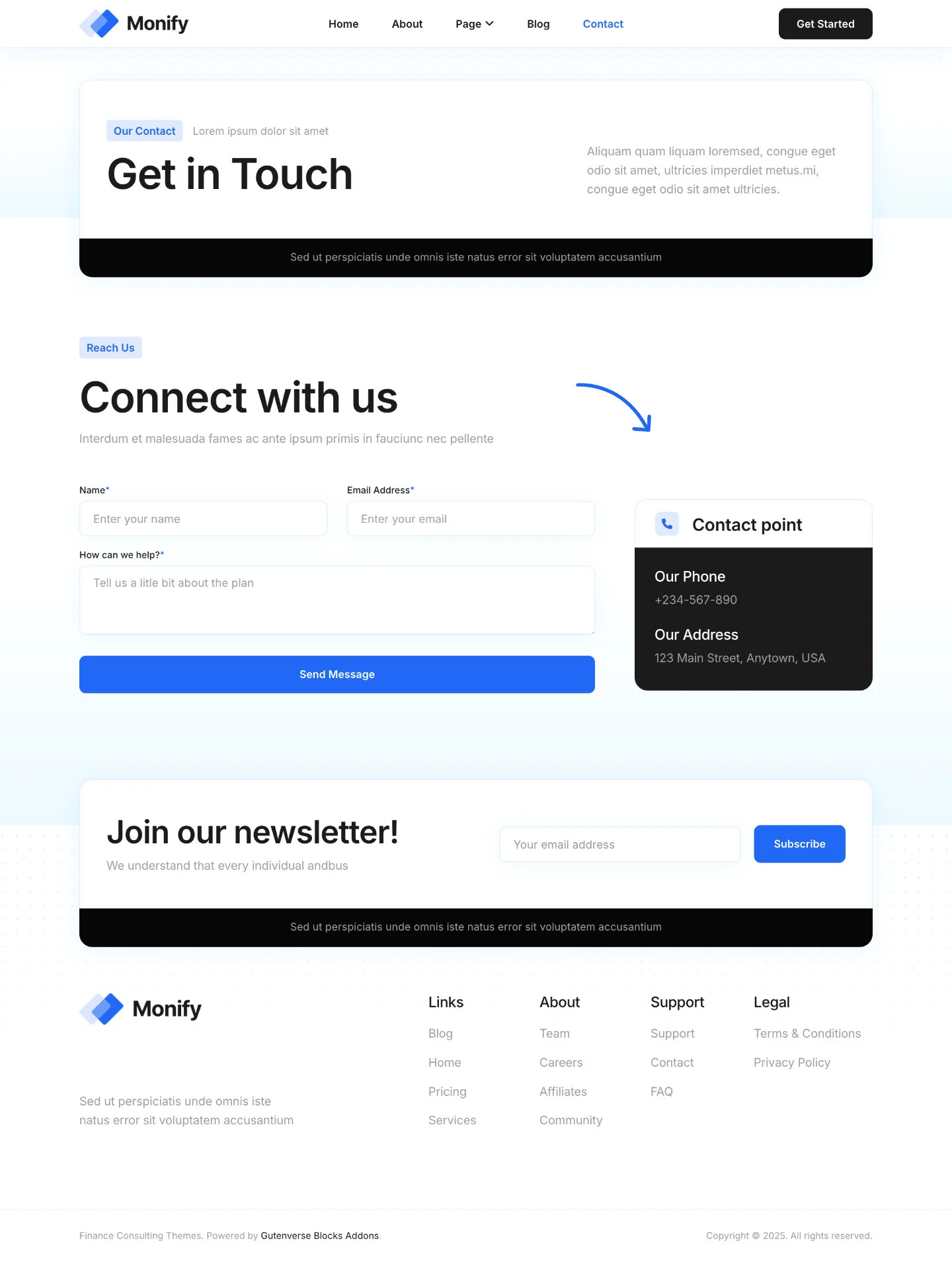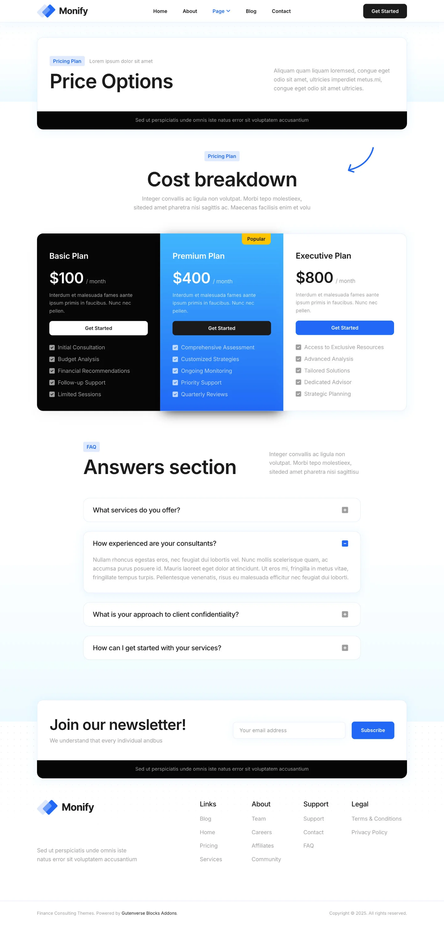 Monify delivers a sleek and modern design, perfect for financial partners, consultants, and corporate businesses. With advanced animations and a fully responsive layout, it creates a polished, professional experience that builds trust and engages clients across all devices.