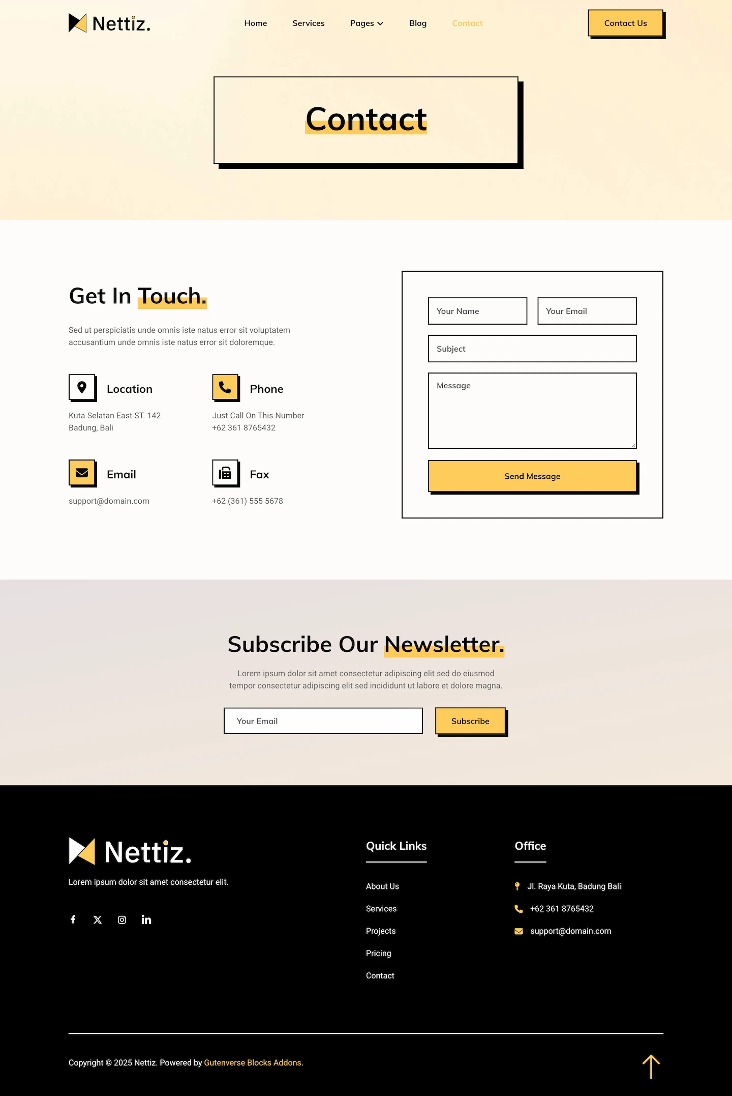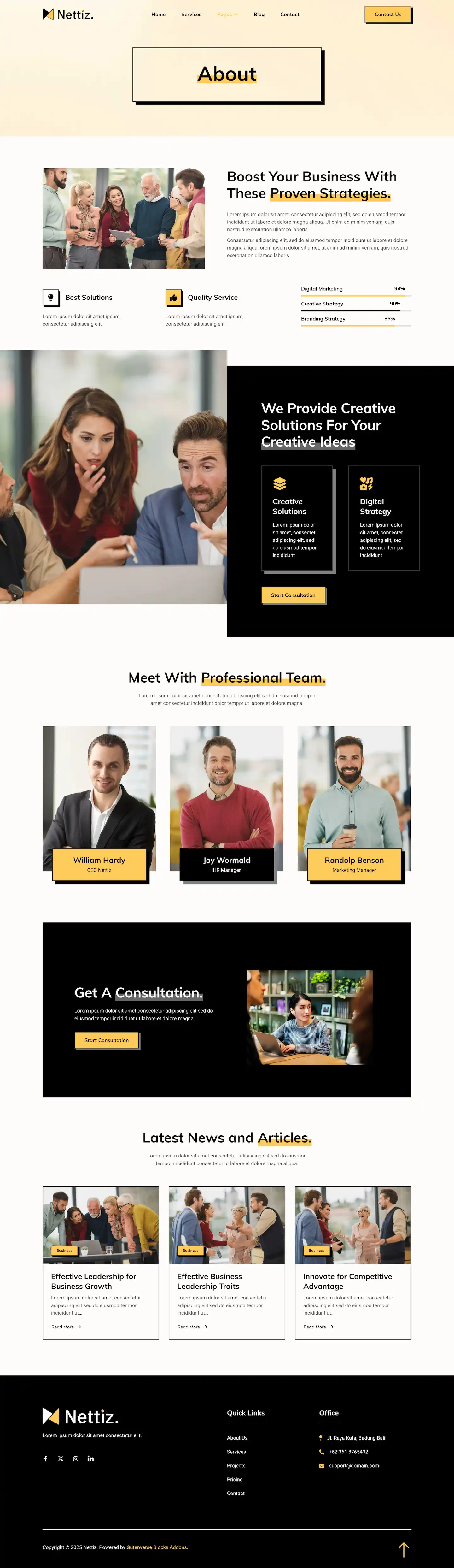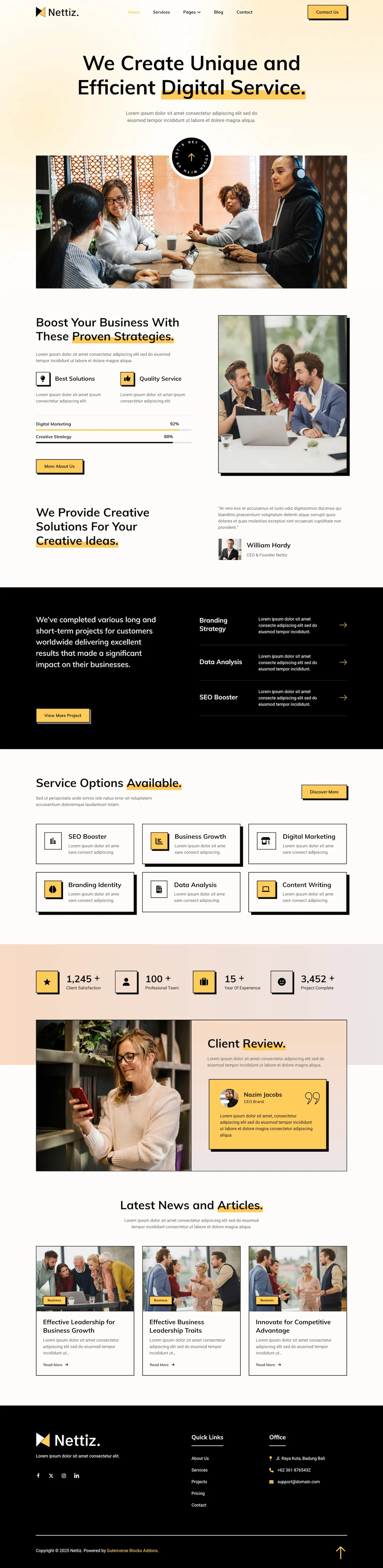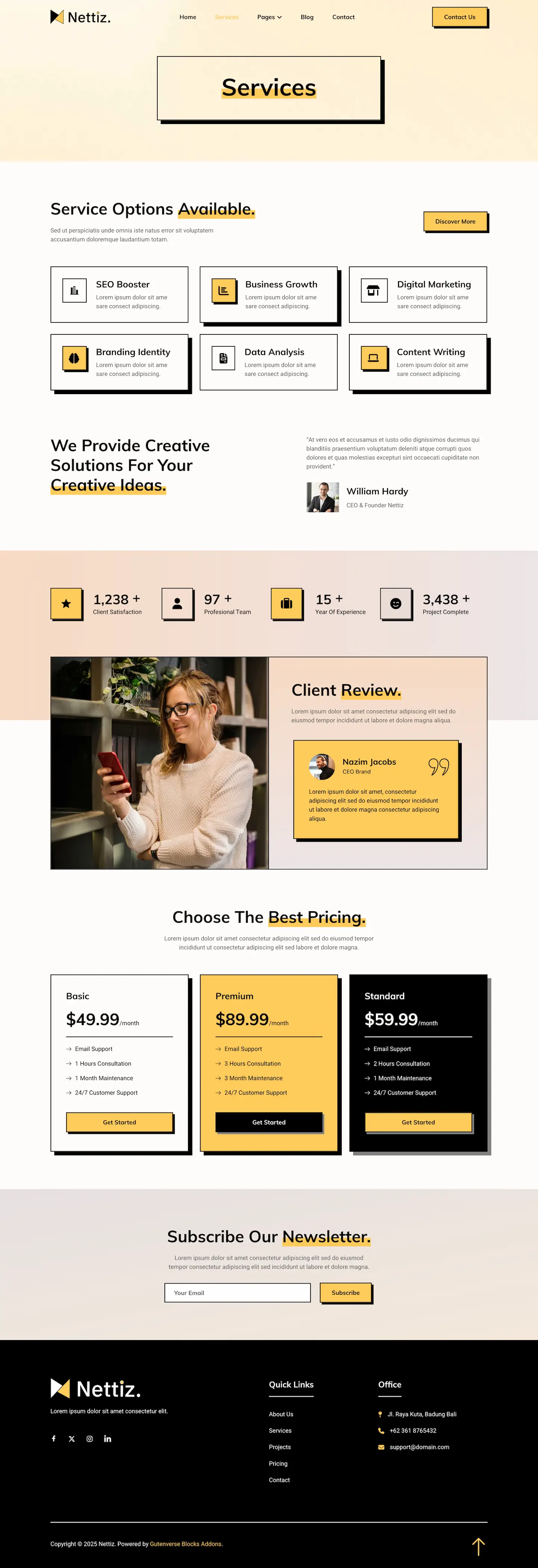 Nettiz brings a bold and modern design, perfect for creating high impact websites for social media marketing agencies and digital service providers. Ideal for content creators, branding experts, marketing teams, and digital strategists. Nettiz helps you present your services, build credibility, and grow your agency with a confident and professional online presence.
