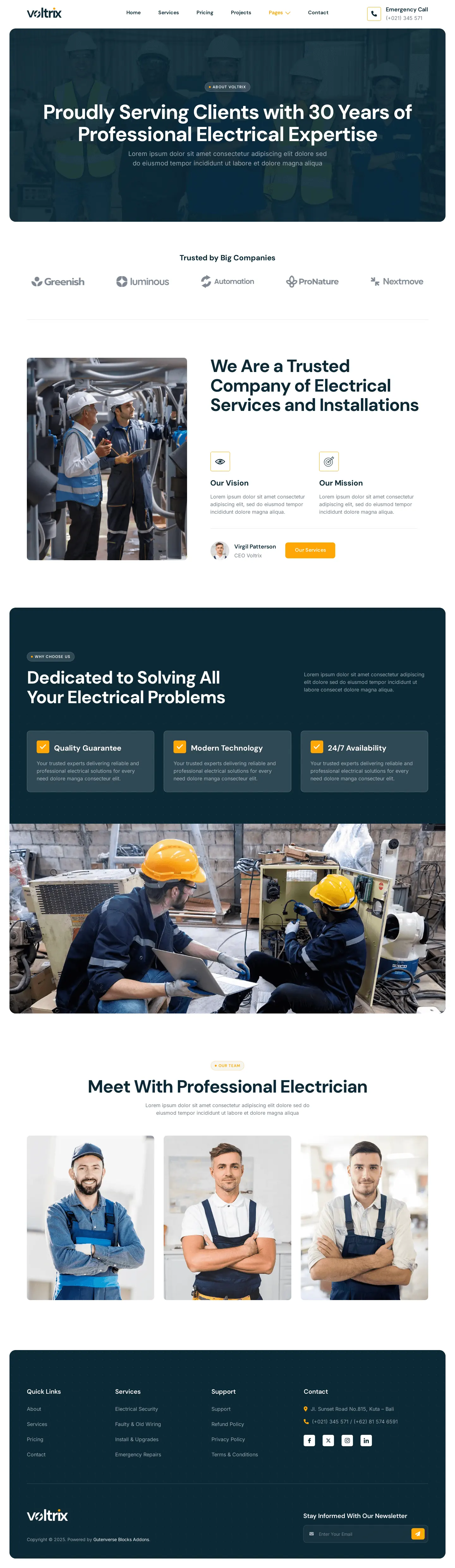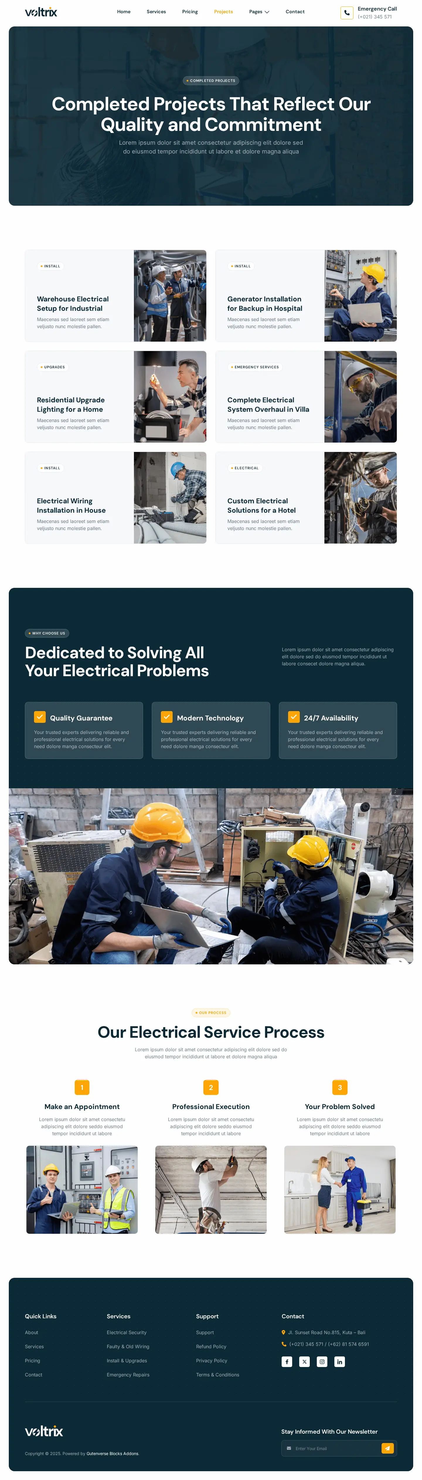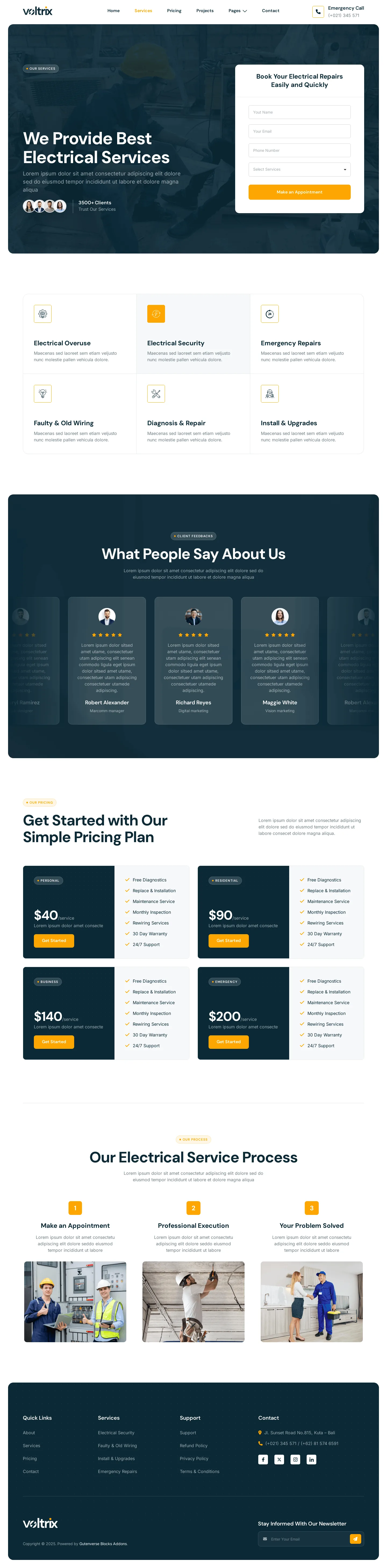 Voltrix offers a powerful solution with a modern design, perfect for creating functional websites for Electrical Installation, Maintenance, and related services. Voltrix is the ideal choice for building a professional, reliable website that showcases your expertise and builds trust with clients.