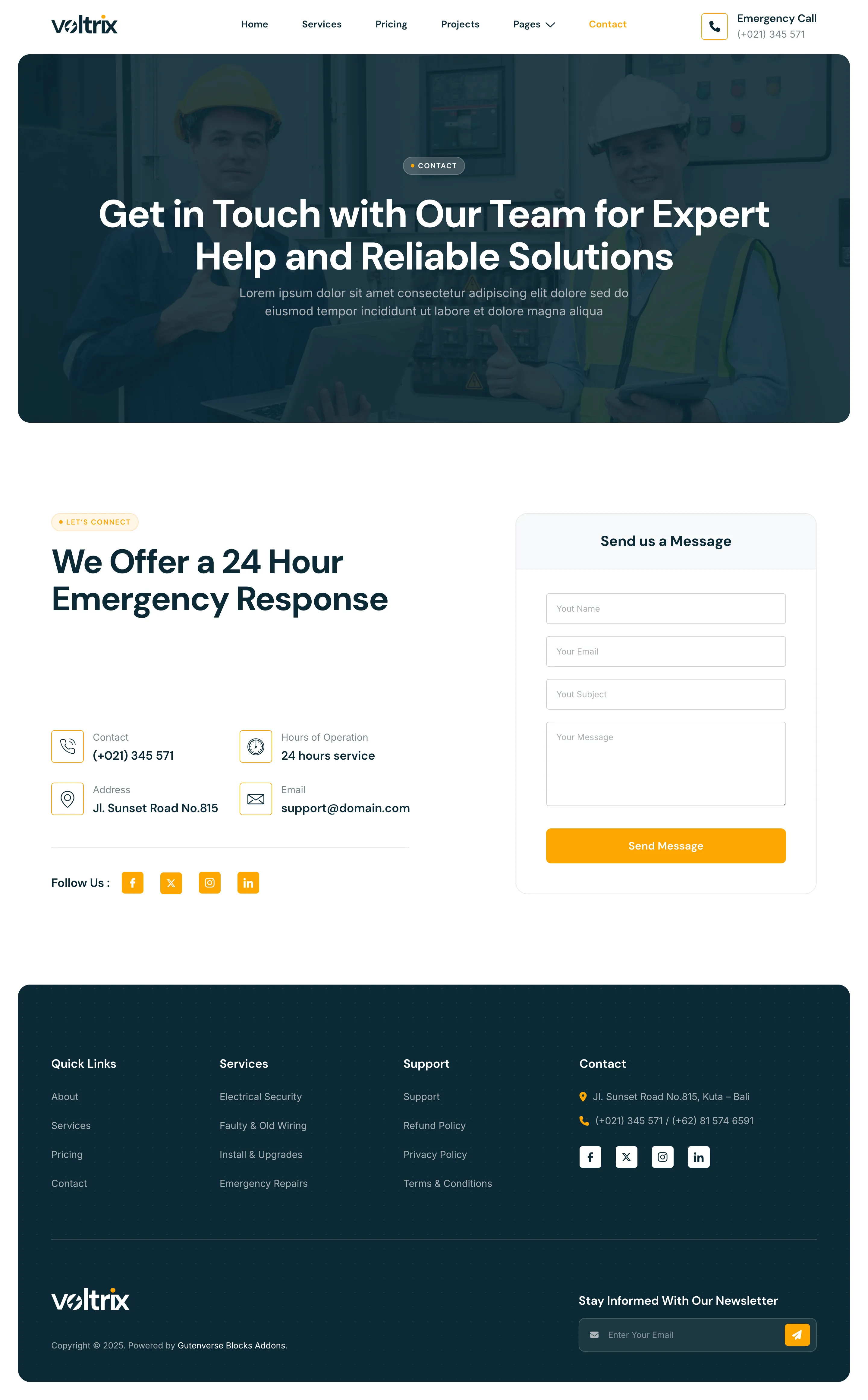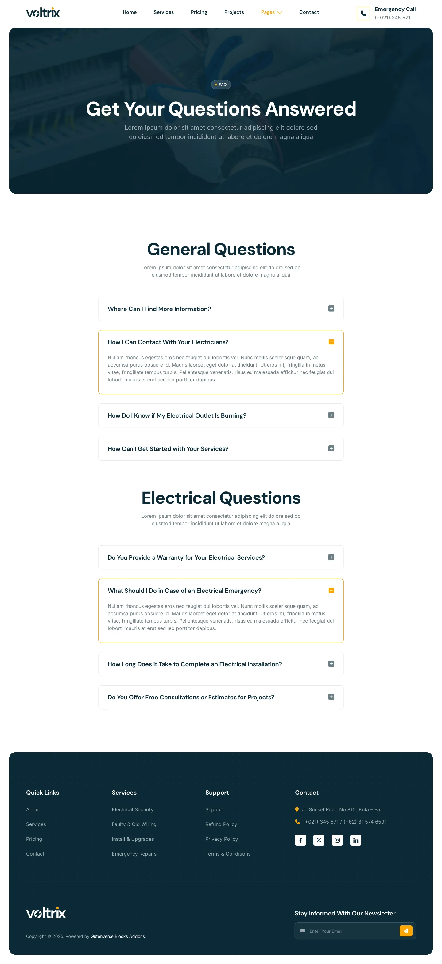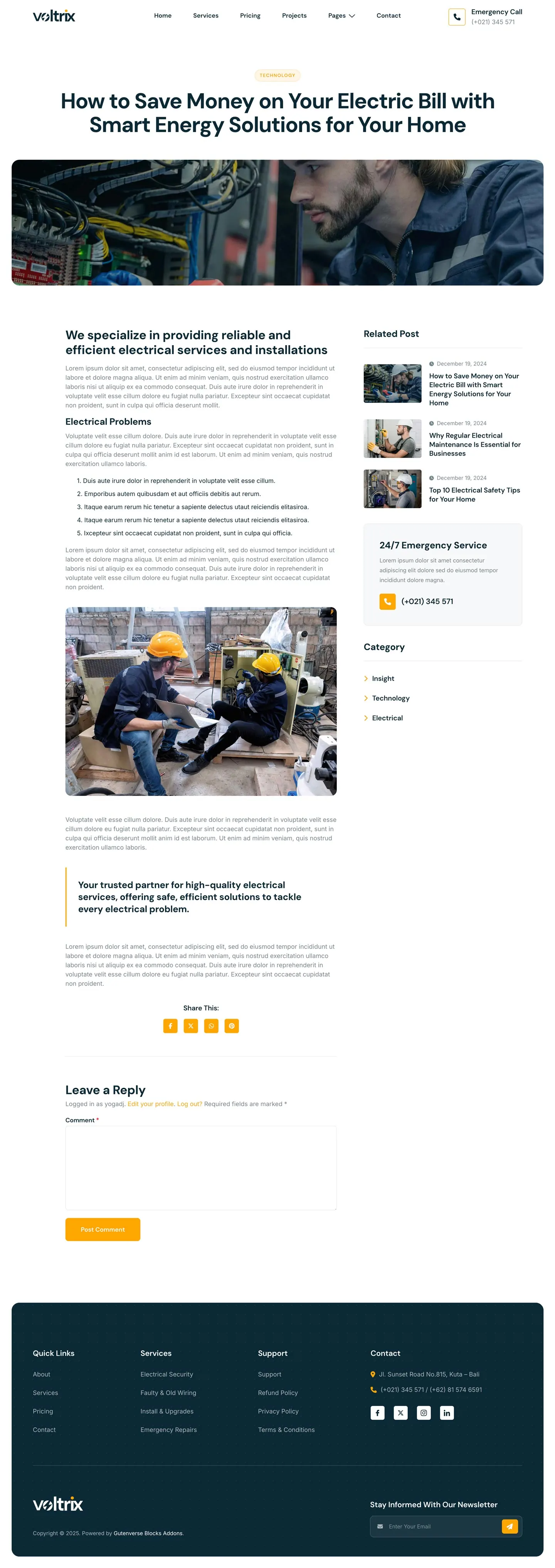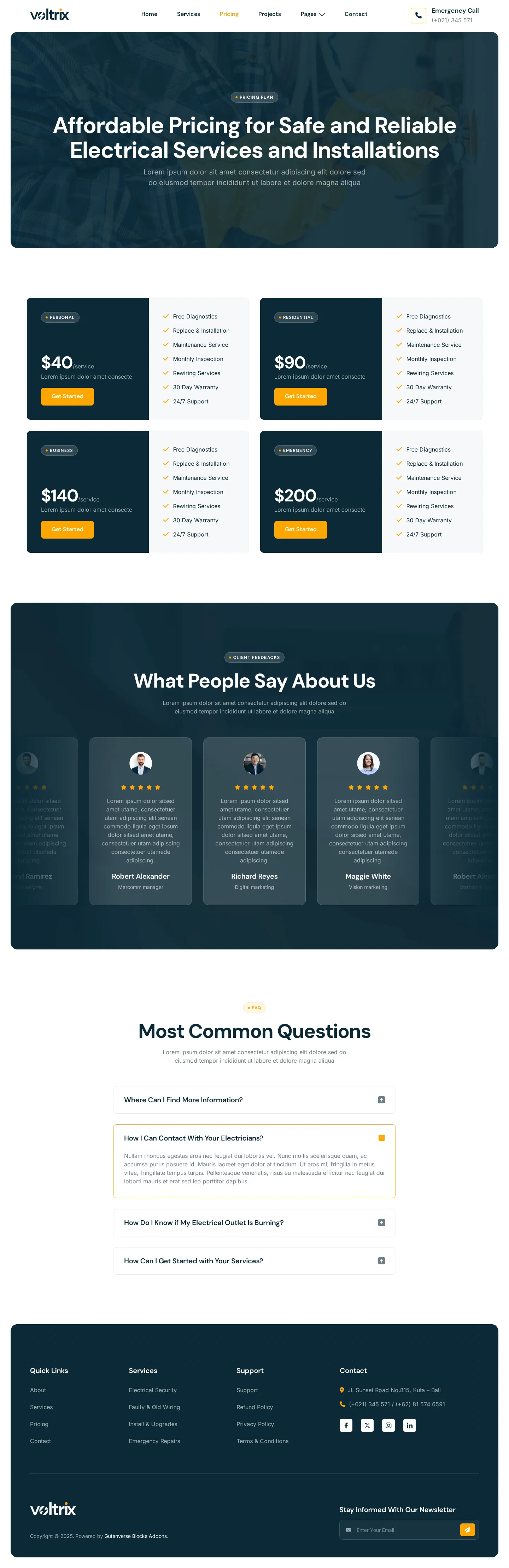 Voltrix offers a powerful solution with a modern design, perfect for creating functional websites for Electrical Installation, Maintenance, and related services. Voltrix is the ideal choice for building a professional, reliable website that showcases your expertise and builds trust with clients.