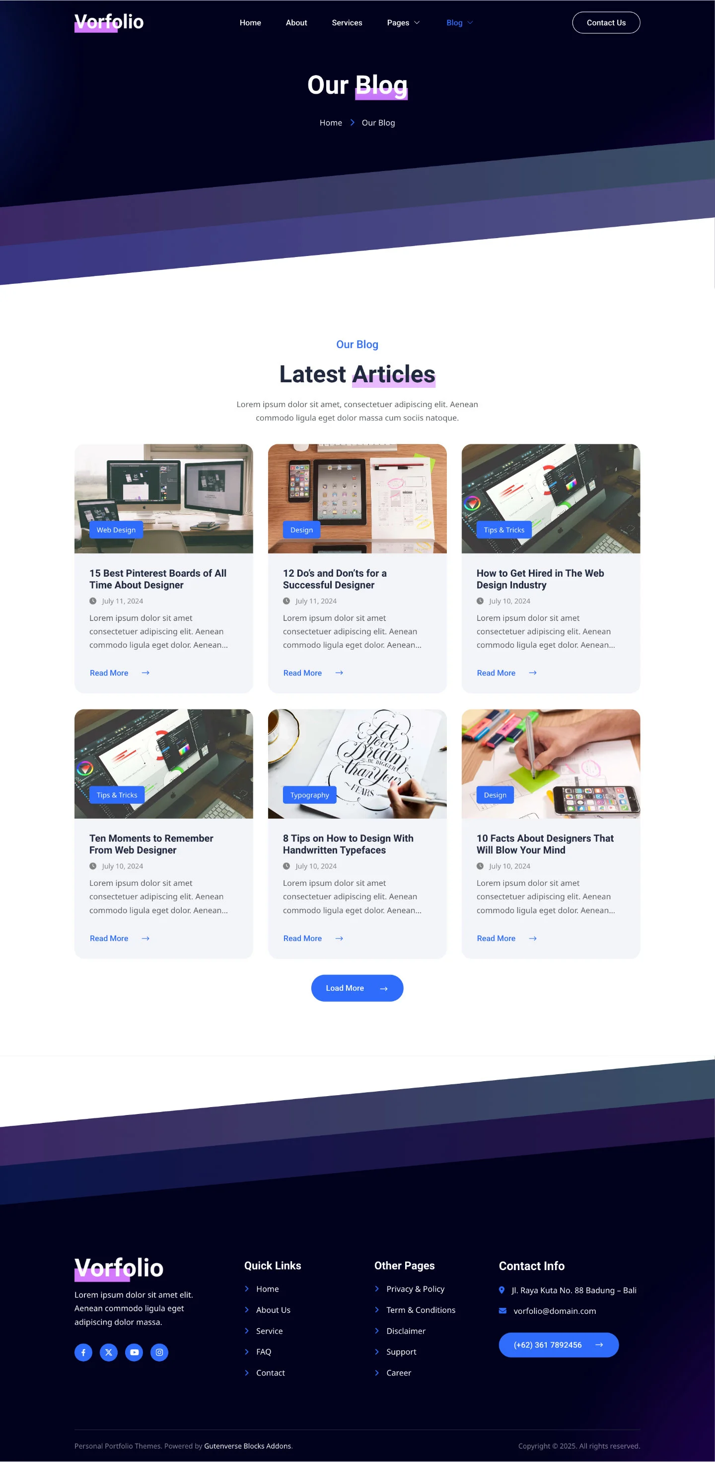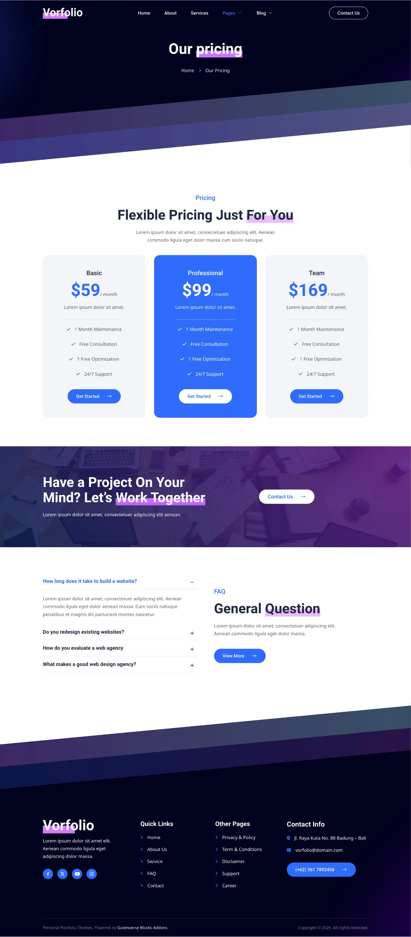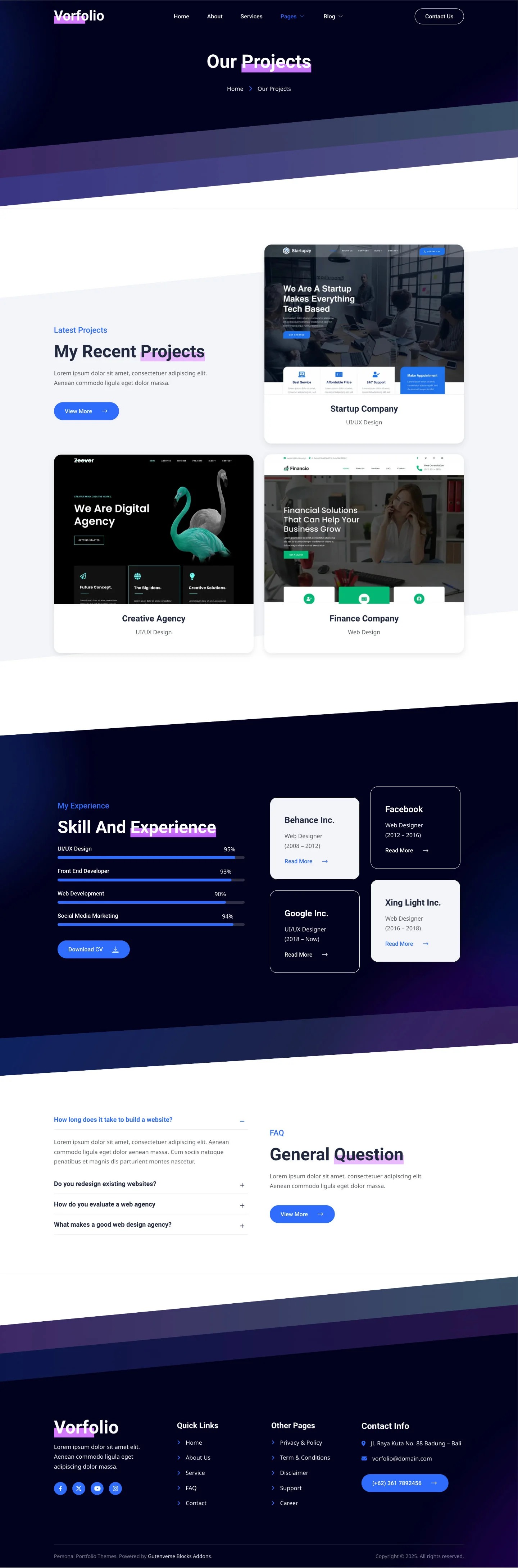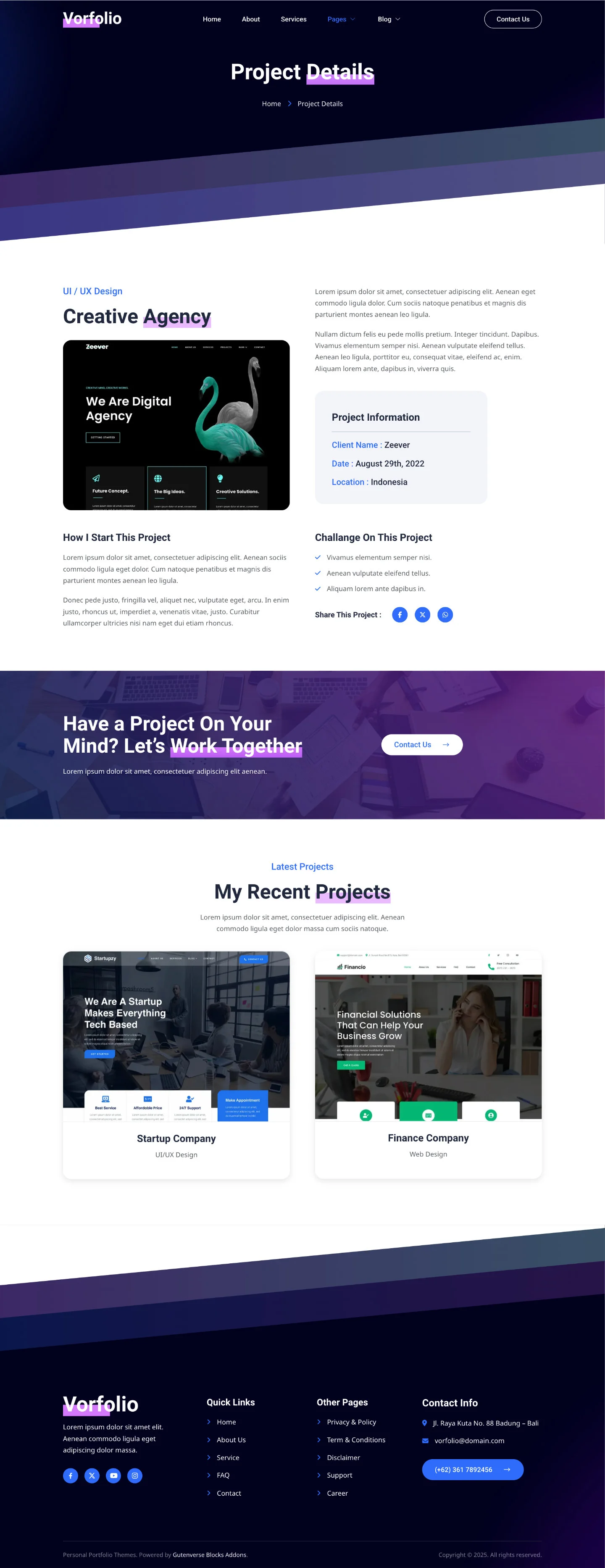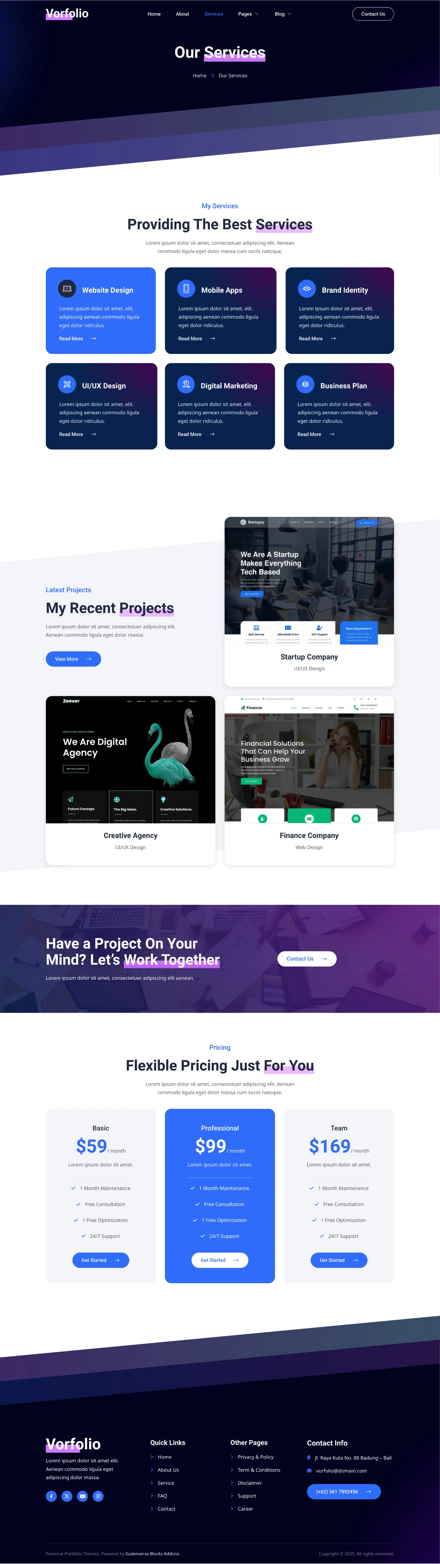 Vorfolio delivers a sleek and modern design, perfect for creative professionals, freelancers, and digital artists. Its clean, responsive layout showcases your portfolio beautifully on any device, helping you make a strong impression and stand out in your field.